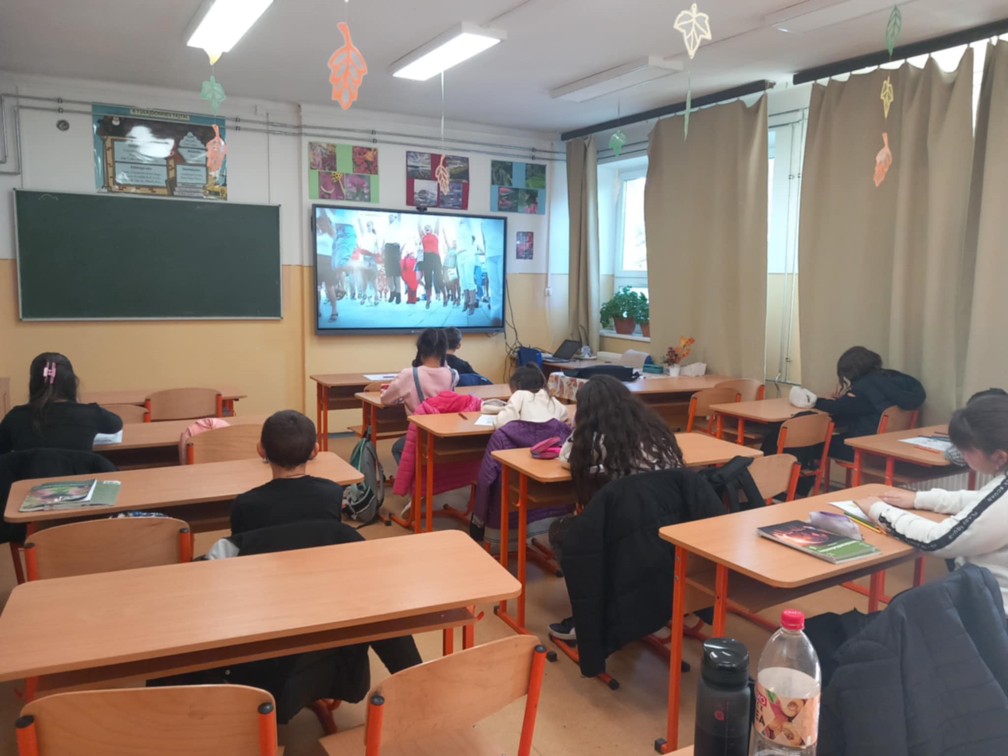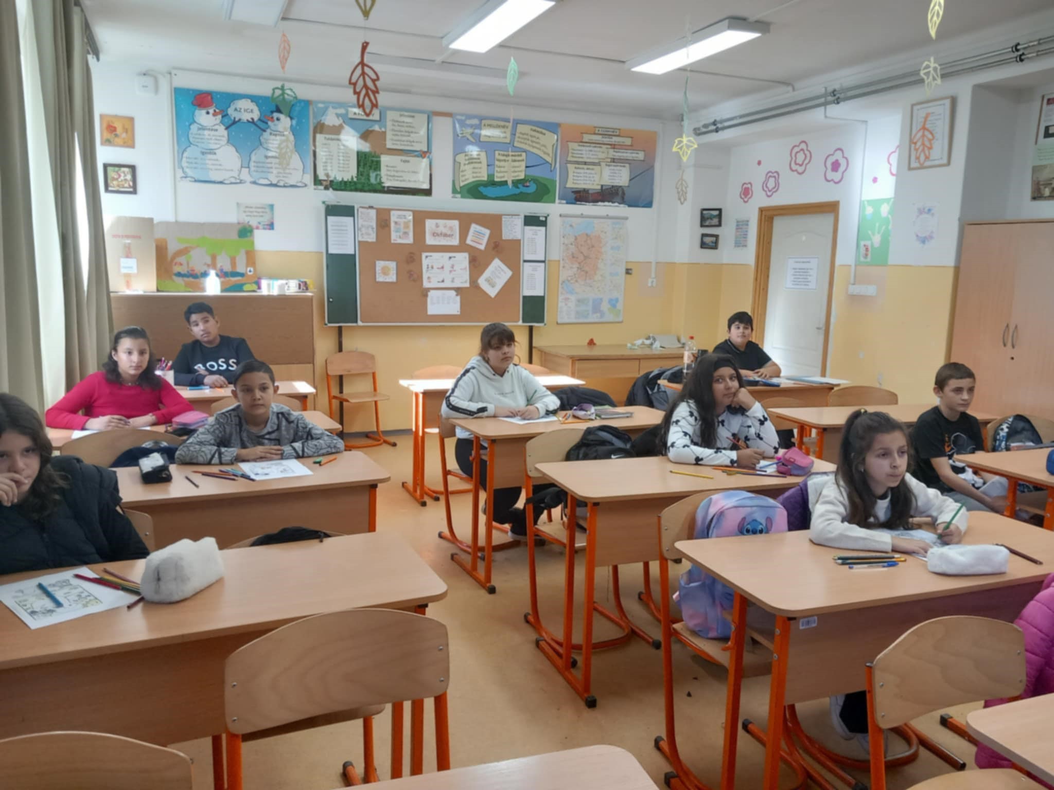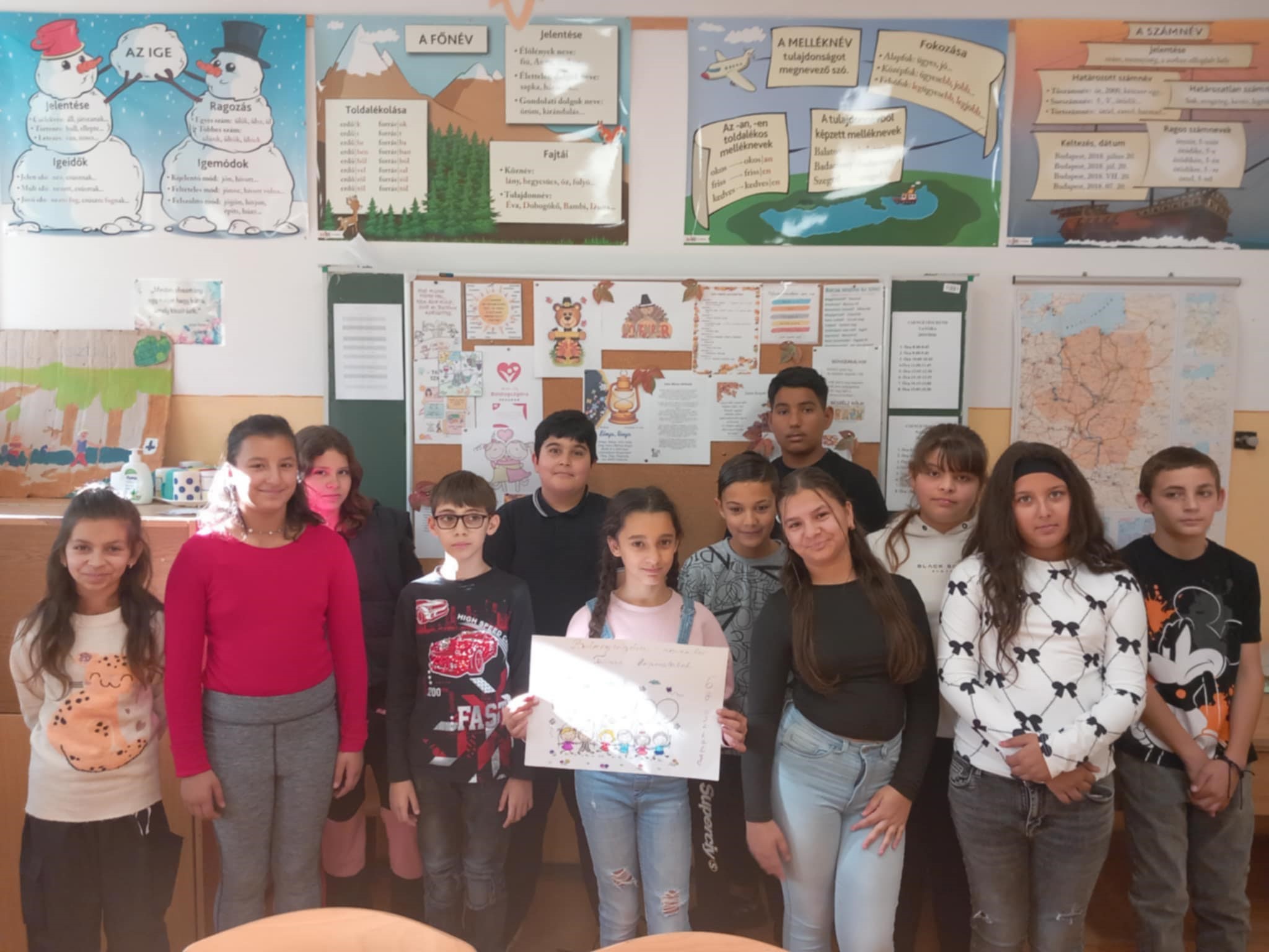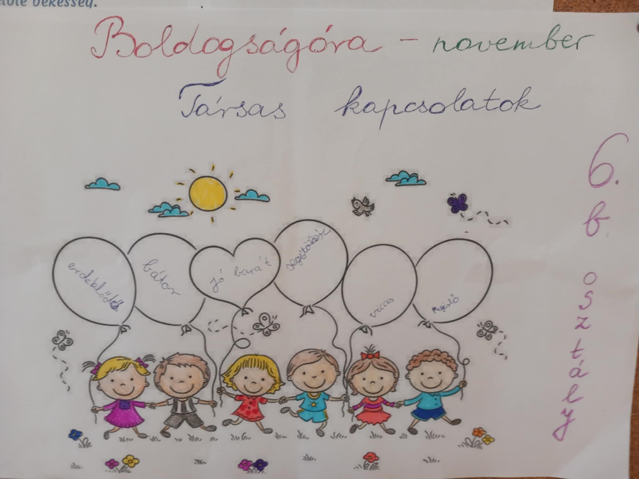 A novemberi Boldogságóra témája a Társas kapcsolatok ápolása. A gyerekekkel megnéztük és énekeltük a Jobb veled a Világ c. dalt, majd megbeszéltük, mi a társas kapcsolat alapja, mire épül egy jó barátság.