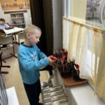 Az egyik legizgalmasabb foglalkozás a Babkísérlet volt. Minden gyerek saját virágcserepet kapott, amelybe babszemeket ültettünk. Kiválasztottuk a „Szeretet babokat”, amelyeket külön gonddal, kedvességgel ápolunk majd, szívecskékkel díszített virágkaróval jelöltük, és a „Csendes babokat”, amelyeket csak az alapvető törődésben részesítjük. A gyerekek így saját élményen keresztül tapasztalták meg, milyen hatalmas ereje van a szeretetnek, odafigyelésnek és gondoskodásnak – ez a tanulság mélyen beépül a társas kapcsolataikba.
