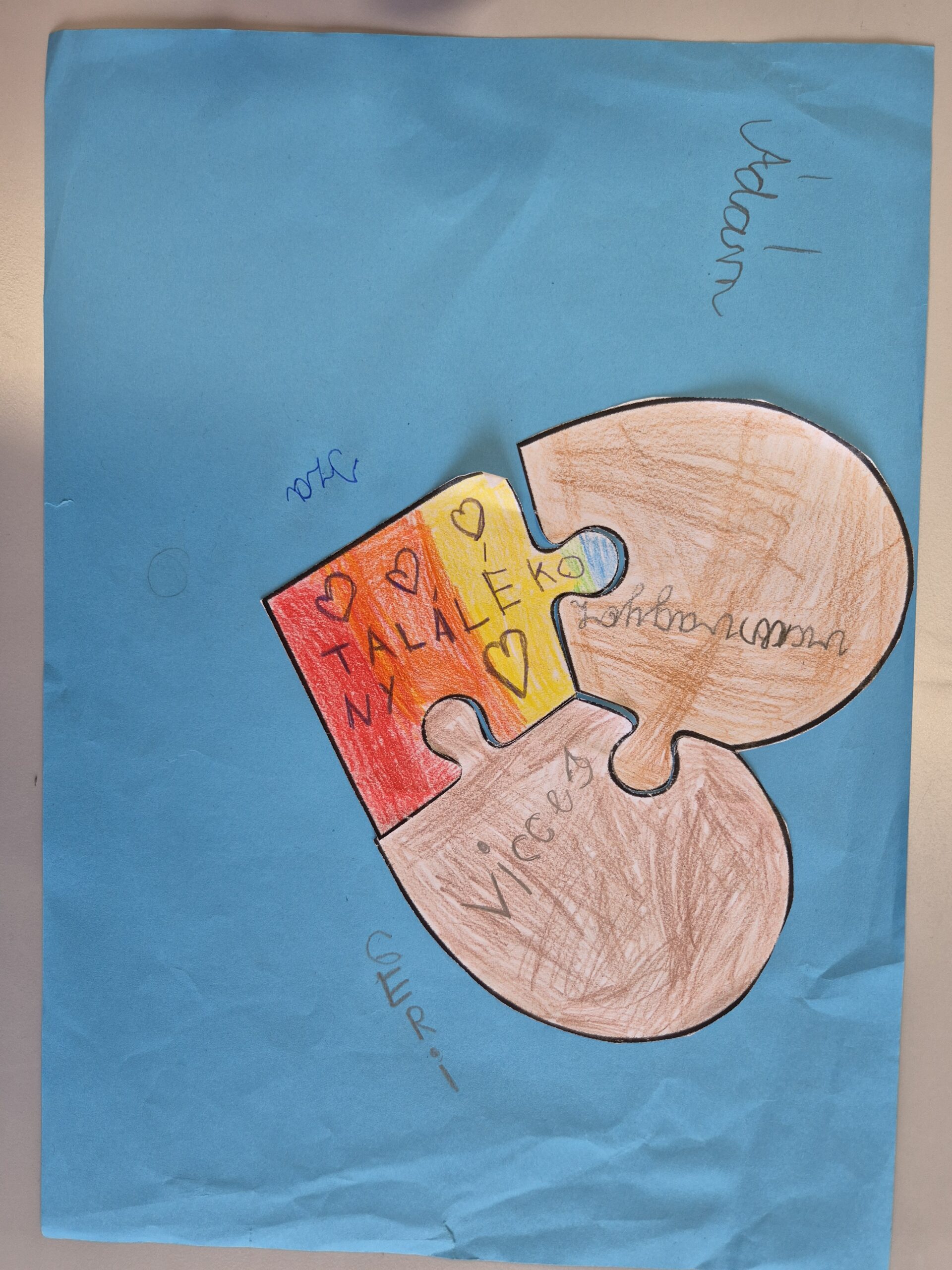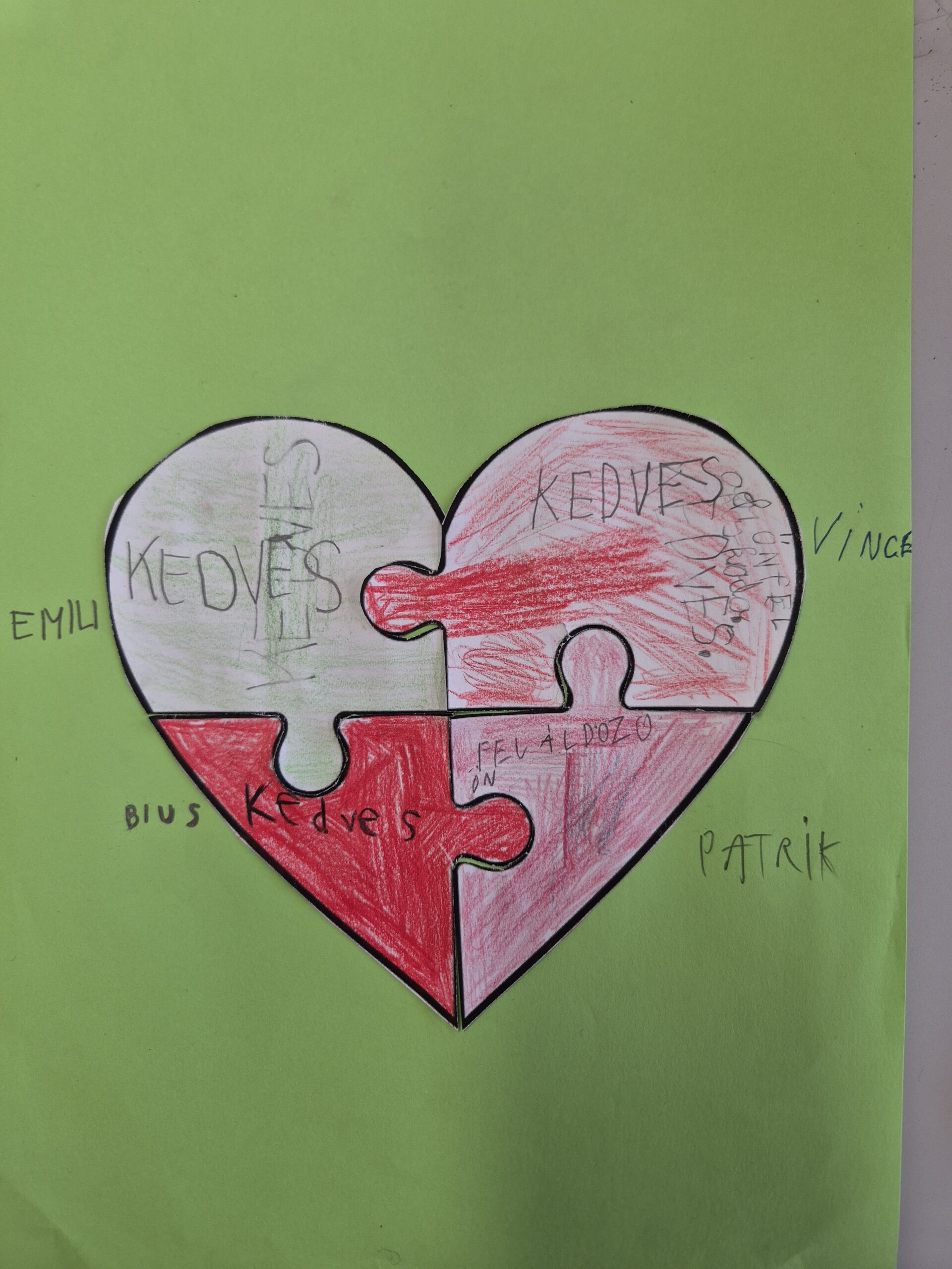 Tolerancia napja alkalmából megbeszéltük a szó jelentését. Gyűjtöttünk pozitív és negatív belső tulajdonságokat. A tanulók csapatokban dolgozva oldották meg a feladot egymást segítve, erősítve. Végül megbeszéltük, hogy közösen, egymást segítve mennyire szép, színes és változatos munkák születtek. Mint minden munkadarab, minden ember is más és értékes.