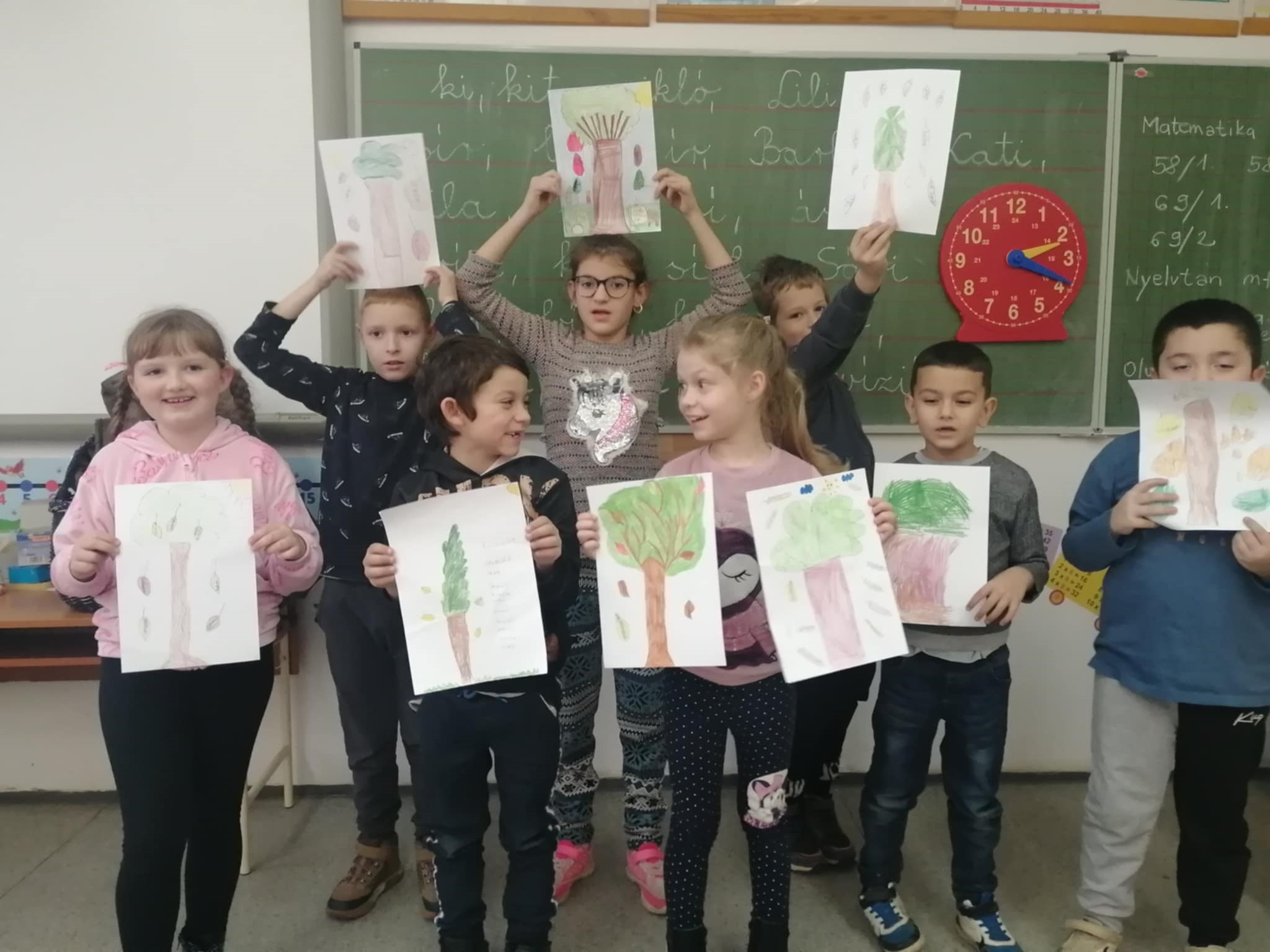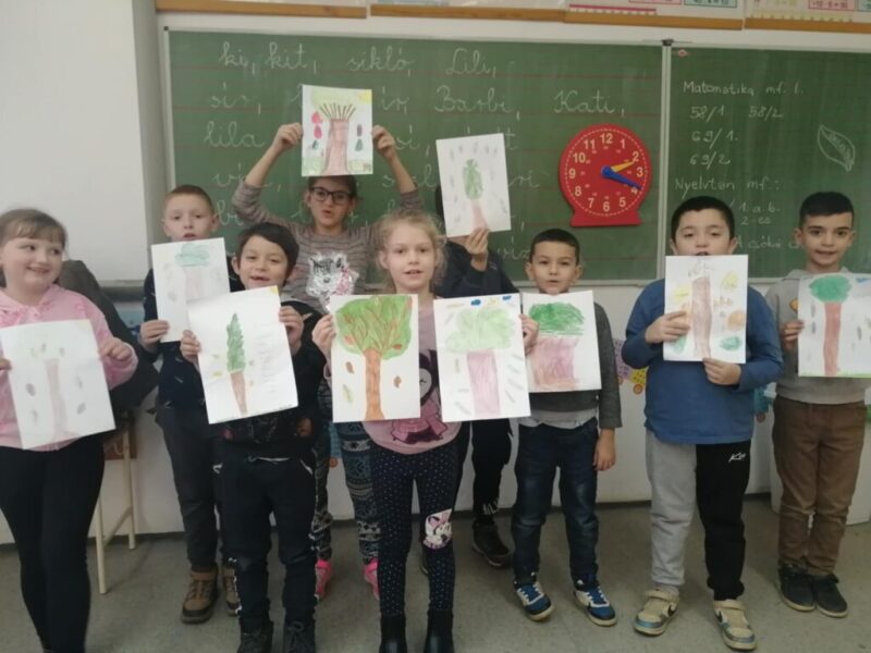 Voltak akik nehezen éreztek rá mik is az erősségeik, ezért alkalmaztuk az erősségzuhany játékot, ahol háttal ültek a gyerekek az osztálynak és pozitív tulajdonságokkal áraszthatták el a székben ülő tanulókat. Végül a távíróoszlopban már egymásra figyelve különböző jeleket rajzolhattak egymás hátára, amit felismerve továbbítaniuk kellett az előttük ülő számára. Vicces volt, hogy mennyire más alakzatot rajzolt le az utolsó gyerek, mint az első. Boldogság volt a gyerekek számára, hogy kis sétát tettünk a közeli bolt jelenleg üres kirakatához, ahová leadhatták kis téli rajzukat, mely szebbé tette az adventi időszakot is.