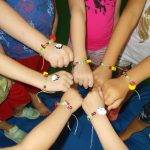 A program végén karkötőt fűzhettek, és kiszineték közösen a fenntartható boldogság szimbólumát.