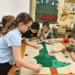 Mézeskalács házikókat készítettünk ajándékba, újra hasznosítva kartonpapírból. Csomagolópapírra megfestették a közös karácsonyfánkat, melyekre olyan díszeket ragasztottak, amire előtte jókívánságokat írtak egymásnak. Egész hónapban odafigyeltek, arra hogy jót tegyenek egymással, segítsék egymást.