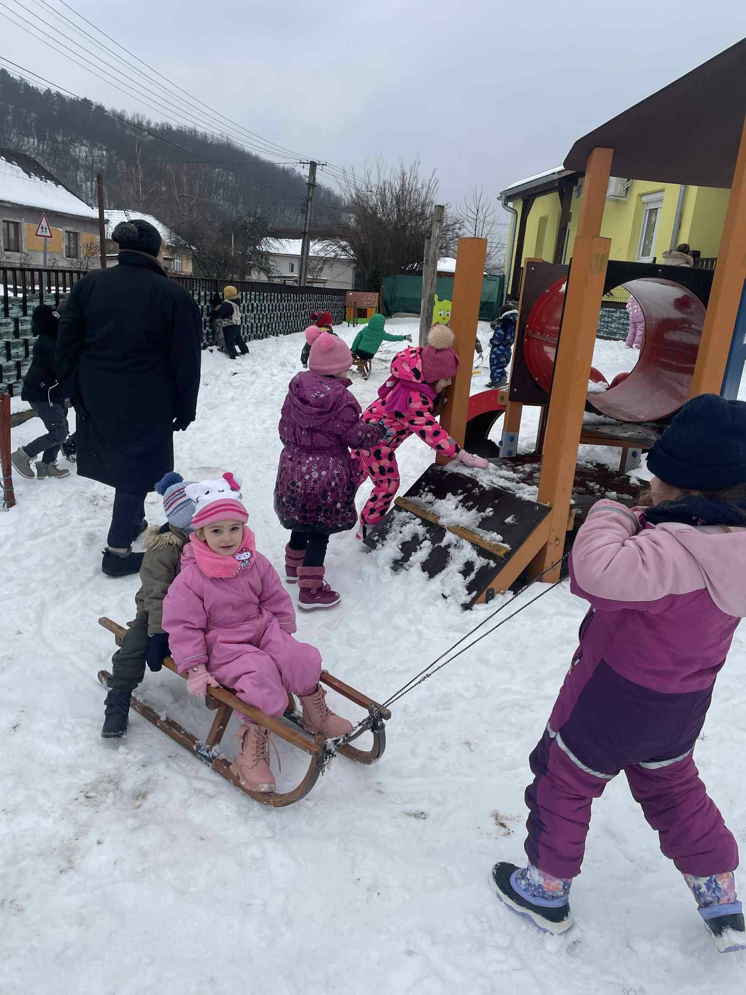 Megérkezett a várva várt hó, sokak nagy örömére. Vannak gyerekek akik még nem is láttak ilyen nagy havat, azt sem tudták mit lehet benne csinálni. Az óvodánk udvarán volt lehetőségük hógolyózni, hóembert építeni, szánkózni.Öröm volt látni a gyermekek arcát, milyen boldogok voltak, várták a következő napokat, hogy milyen újabb téli játékokat lehet majd kint játszani.