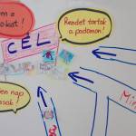 Így ezt a három célt választottuk ki. Azt is megbeszéltük, mik lehetnek azok az okok, amik eltérítenek bennünket a célunktól. Így a térkép megrajzolásakor ezek a kis „mellékvágányok” is felkerültek.