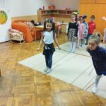 Téma feldolgozása mesével, mozgással.