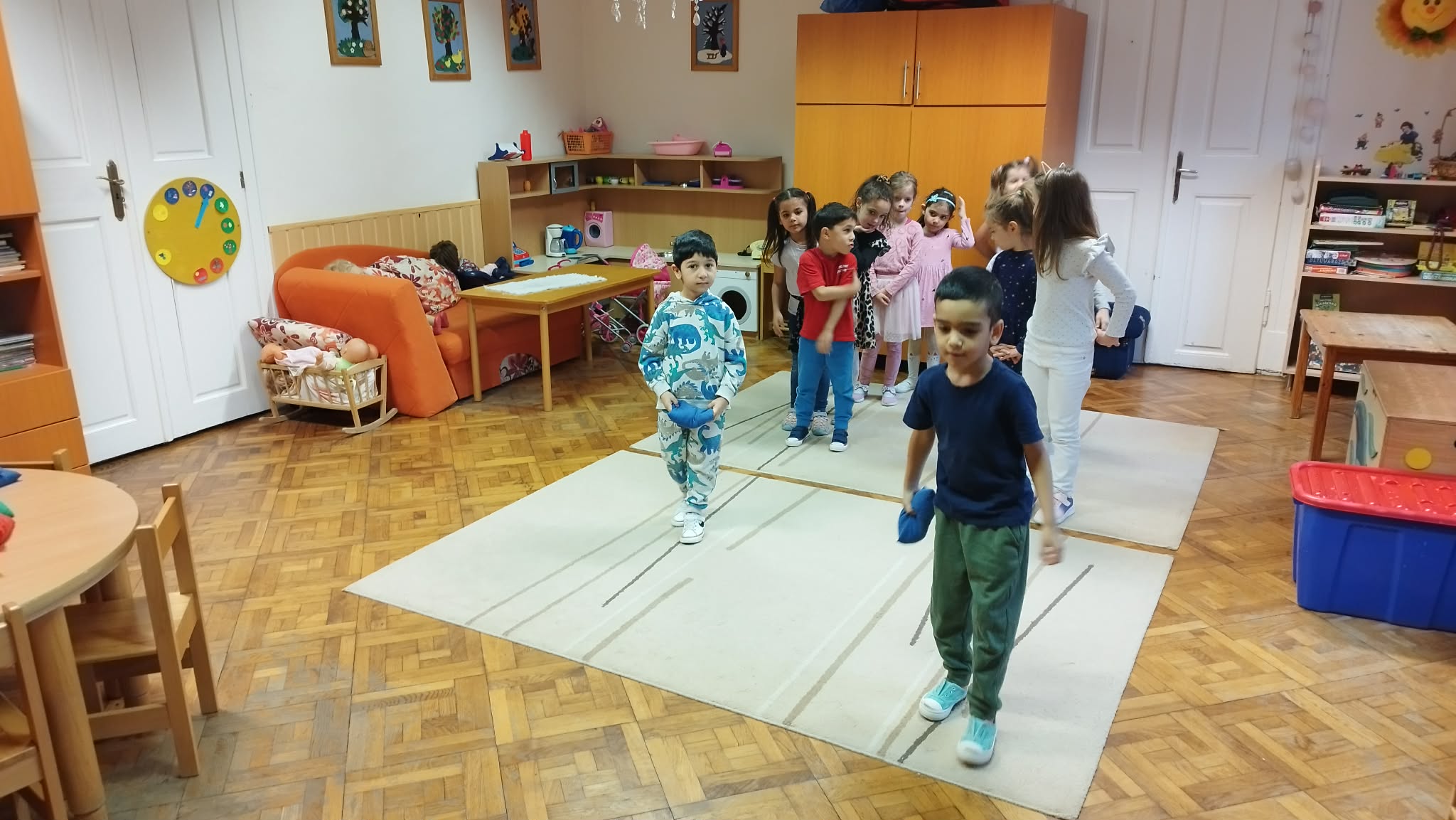 A gyerekekkel megbeszéltük a boldogság fogalmát, nagyon éretten, okosan meg tudták fogalmazni. Mindenki elmondta mi a célja az óvodában, a családban és a jövőben. Figyelmesen hallgatták a „Boldogvár meséje” című mesét, ami nagyon tanulságos volt a gyerekek számára. Megbeszéltük a tanulságokat, a tartalmat. A mozgásos feladatok, a célba dobás is nagyon tetszett nekik, lelkesen szurkoltak egymásnak.