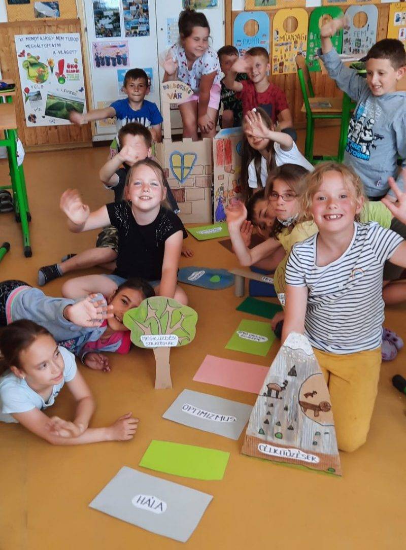 Újra felelevenítettük az egész évi témákat. Kiderült kinek mi volt a kedvence. Csoportmunkában szétosztottuk a feladatokat. Örömmel láttak a munkának.