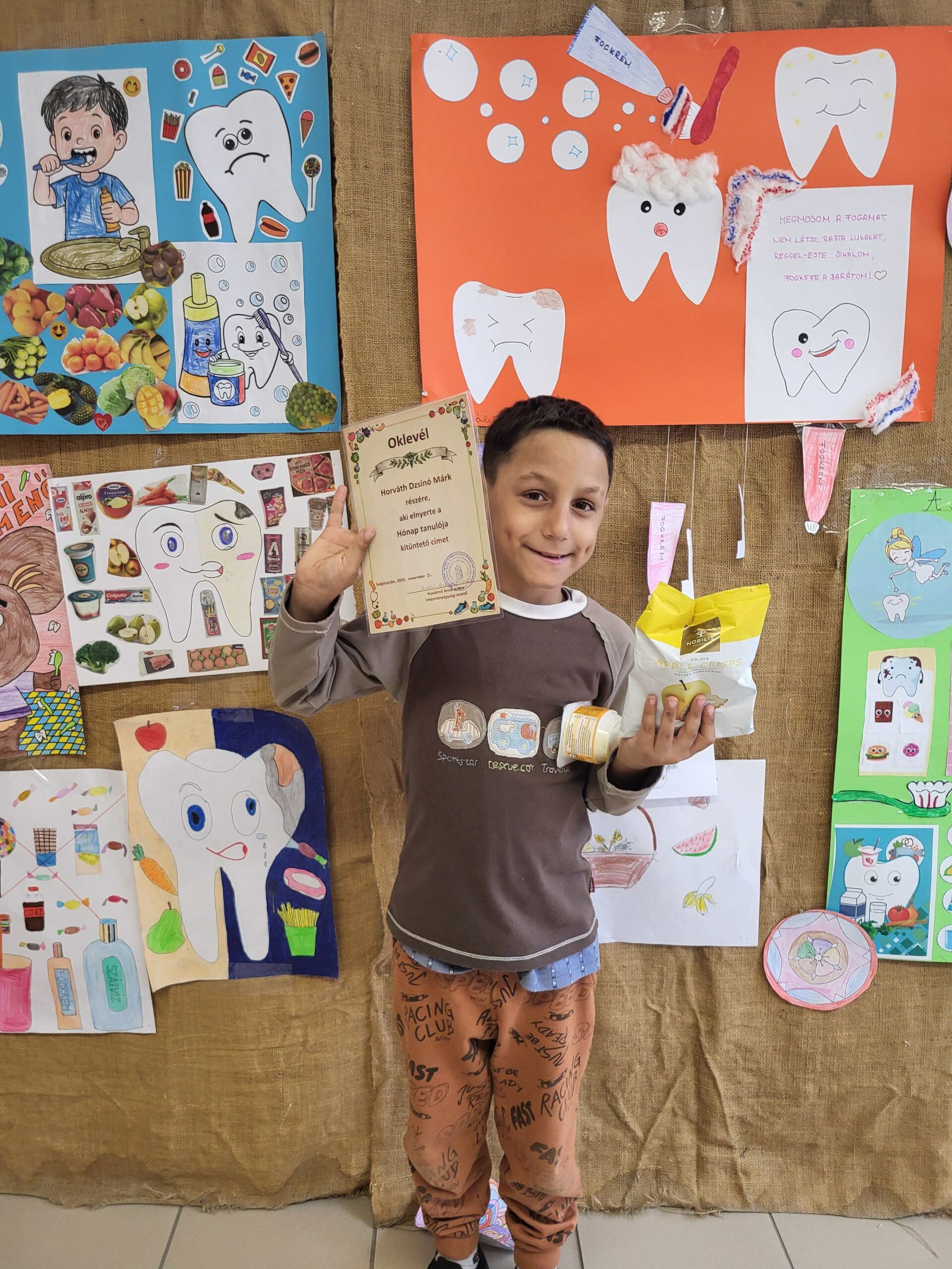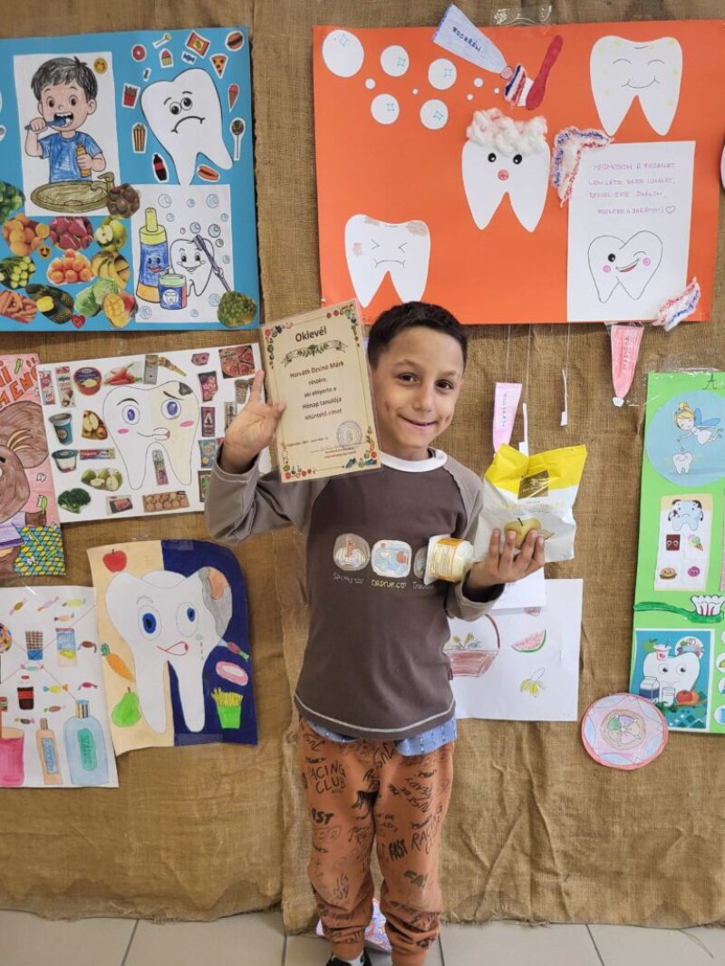 A társas kapcsolatok ápolásának témakörében a szociális kompetenciák és az empátia alapjainak gyakorlására, valamint a testi-lelki egészség megőrzésére koncentráltunk. Az osztályban azt a célt tűztük ki, hogy nagyon figyelünk a konfliktusmentes kommunikációra és a társainkkal való együttműködésre, hogy erősödjön a csoporthoz tartozás érzése. Sajnos az egyik kislány az osztályból kórházba került Budapestre kivizsgálásra. Nagyon hiányzott mindenkinek, ezért azt találtuk ki, hogy felhívjuk őt és megpróbáljuk jobb kedvre deríteni. Volt, aki rajzot is készített neki, volt, aki énekelt és az egész osztály gyógyító szívecskét küldött Relindának. November az iskolánkban hagyományosan az egészség hónapja is, ennek keretében sok érdekes programon vettünk részt: közös torna, előadások, gyümölcssaláta készítés, plakátkészítés, vetélkedő. A hónap zárásaként pedig iskolagyűlésen díjaztuk a vetélkedő résztvevőit és jutalmaztuk a Hónap tanulóit.