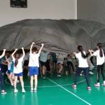 A Szolnoki Kőrösi Csoma Sándor Általános Iskola és A. M. I. 3. a és 3. c osztálya közösen „ejtőernyőzött”. A gyerekek nagyon élvezték ezt a különleges testmozgást. A játékok mellett az ejtőernyő kör alakja is a közösségépítést szolgálja. Látják egymást, egymás arcán az örömöt, elégedettséget, vagy akár a csalódást. Mások érzelmének megtapasztalása segíti az empátia mélyítését is. Levezeti a feszültséget, oldja a stresszt, így nem csak a mozgás öröme adatik meg egy-egy ilyen különleges órán. Az érdeklődő kisfiú a végén ezt mondta: „Szuper volt! Legközelebb én is szeretnék beállni.” Ennél jobb dolog nem is történhetett volna!