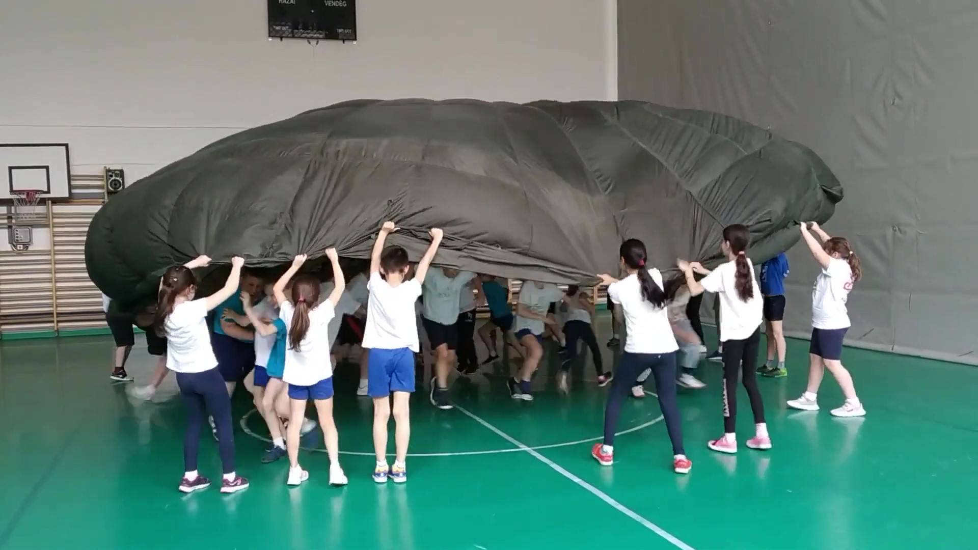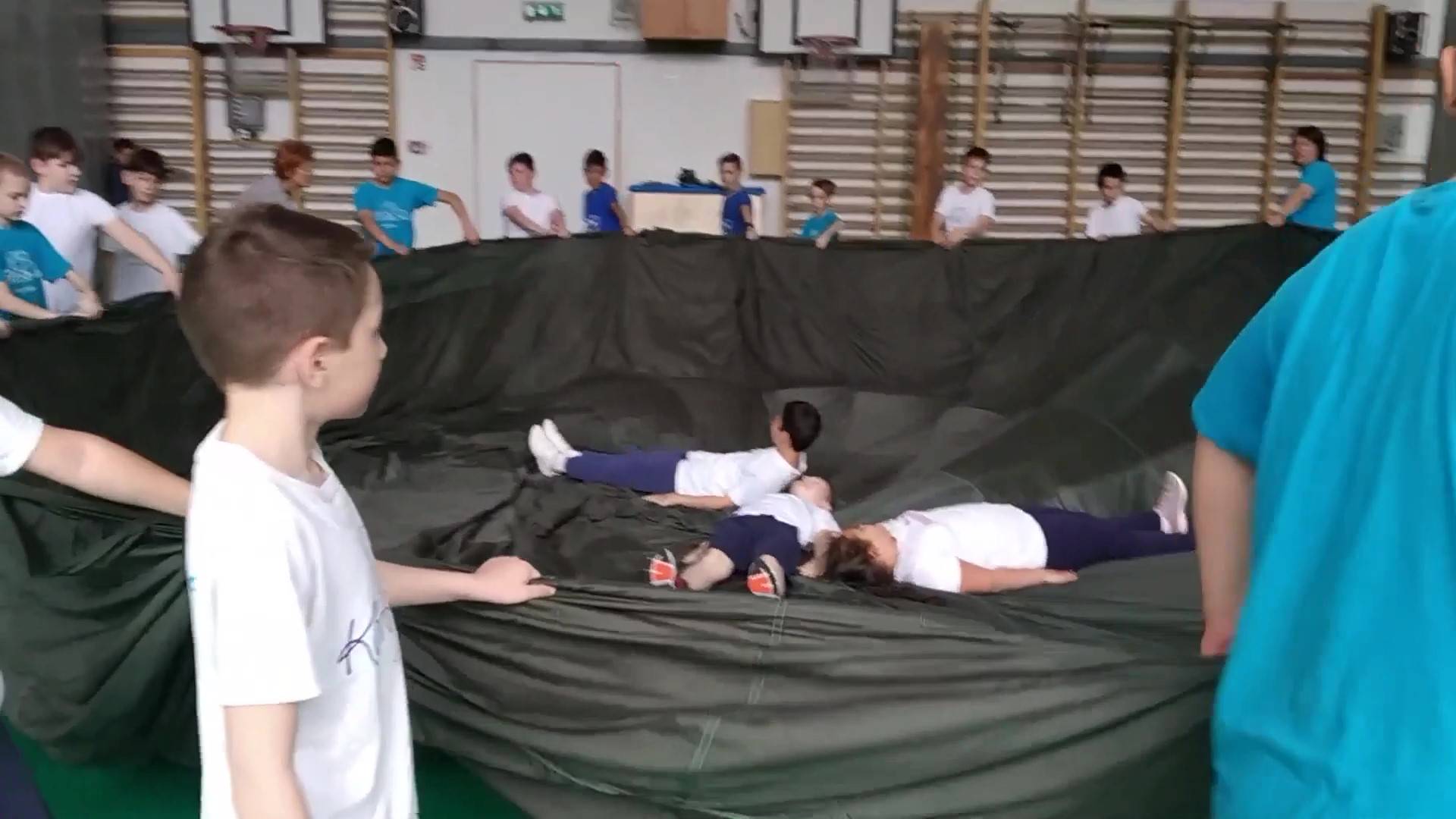 A Szolnoki Kőrösi Csoma Sándor Általános Iskola és A. M. I. 3. a és 3. c osztálya közösen „ejtőernyőzött”. A gyerekek nagyon élvezték ezt a különleges testmozgást. A játékok mellett az ejtőernyő kör alakja is a közösségépítést szolgálja. Látják egymást, egymás arcán az örömöt, elégedettséget, vagy akár a csalódást. Mások érzelmének megtapasztalása segíti az empátia mélyítését is. Levezeti a feszültséget, oldja a stresszt, így nem csak a mozgás öröme adatik meg egy-egy ilyen különleges órán. Az érdeklődő kisfiú a végén ezt mondta: „Szuper volt! Legközelebb én is szeretnék beállni.” Ennél jobb dolog nem is történhetett volna!