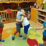A tevékenységet Bagdi Bella: Jobb veled a világ című dalának a meghallgatásával kezdtük, mozgással kísérve. Ezt követően felelevenítettük az elmúlt hónapok témáit, a gyerekek hogyan tudják alkalmazni a mindennapi életükben. Majd a Fenntartható Boldogság összetevőiről beszélgettünk: pozitív érzelmek, társas támogatás, szokássá válás. A témát a Boldog erdő- kerekerdő című mesével dolgoztuk fel, majd a mf: 70. oldalán található boldogságfokozó technikák jeleinek felelevenítése, kinek melyik a kedvence. A tevékenységet játékkal folytattuk, a Seprűtánccal, amit a gyerekek nagyon élveztek, örömmel vettek részt benne. A foglalkozás lezárása a mf: 72-73. old.Boldogságfűzér készítése, majd a végén Öleléslánccal zártuk. A gyerekek örömmel vettek részt a tevékenységekben, Bagdi Bella dalai is magával ragadta őket. A munkánk során nagyon fontos, hogy boldog gyerekekkel foglalkozzunk, akik élvezzék az életet.