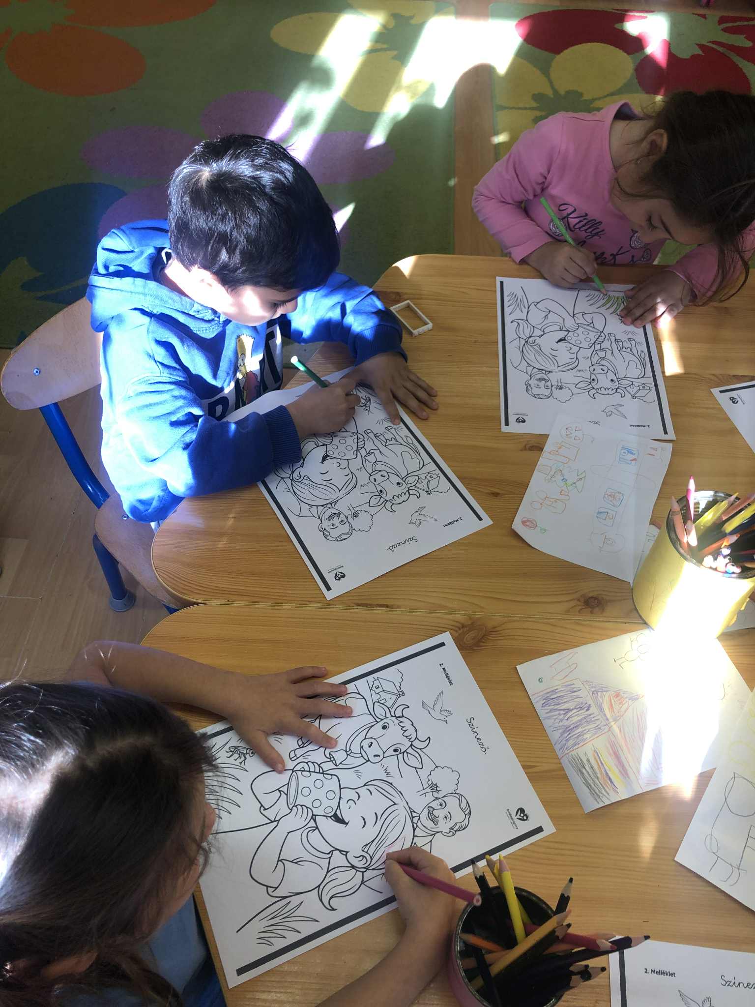Majd ezt követően A jó orvosság című mesét dolgoztuk fel a gyermekekkel. A mese végén beszélgettünk, majd elkészíthették a meséhez kapcsolódó színezőt.
