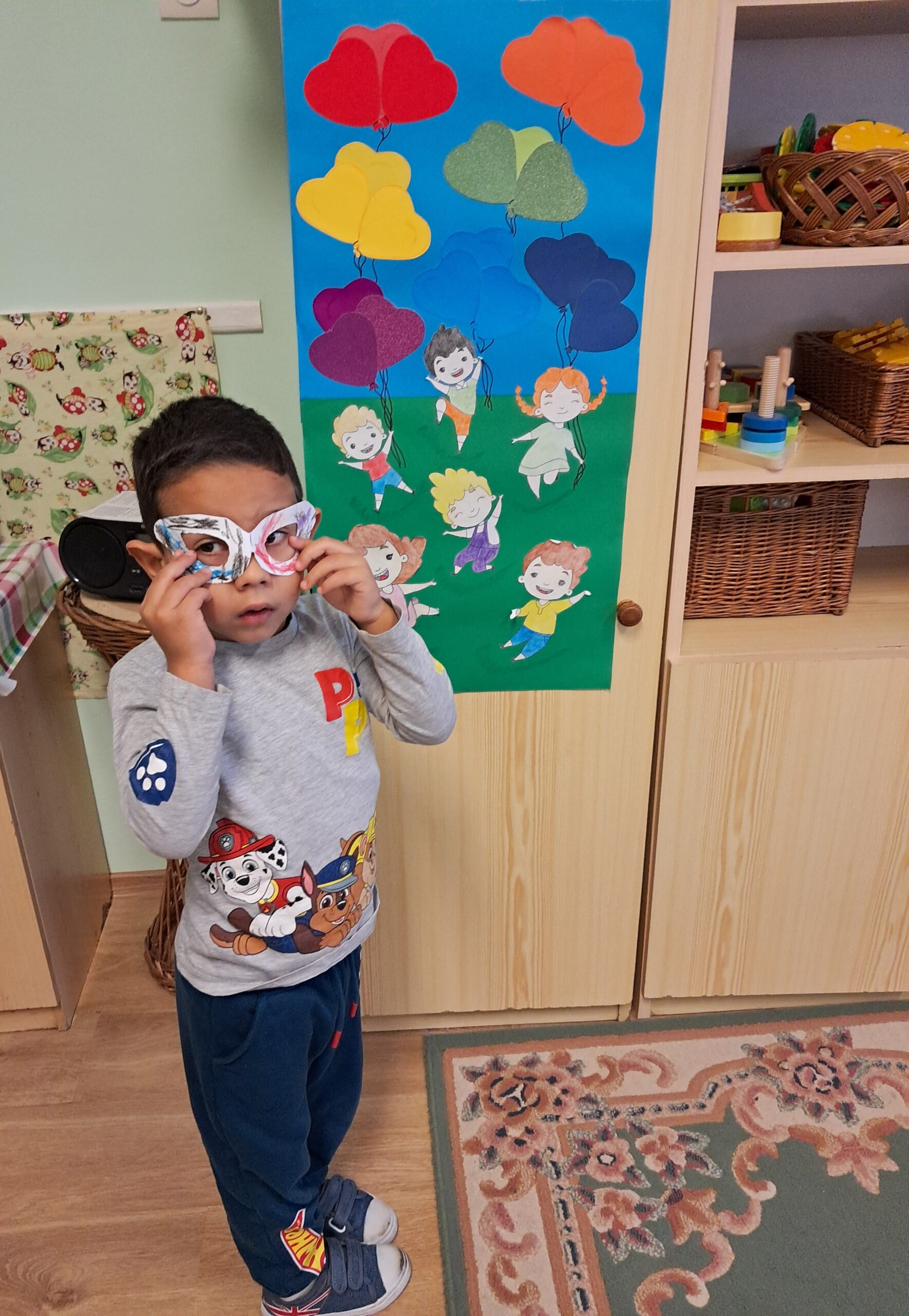 Azt hiszem hagyománnyá vált csoportunkban az varázsszemüveg készítése. Arról beszélgettünk a nagycsoportosokkal, vannak olyan időszakok amikor nehezen vesszük észre, ha valami jó történik. Az hamarabb, meghalljuk: „Nem adta ide, Elvette, Nem engedi, hogy velük játsszak, Elrontotta, Összedöntötte” és még sorolhatnám. Ezért elhatároztuk, a jóra, az örömtelire, a kedvességre koncentrálunk. A délelőtt végén mindig megbeszéljük ki, milyen jót, kedvességet, szépet, jóságot vett észre aznap. Ehhez kezdetben szükségünk van a varázsszemüvegre. Már az elkészítését is élvezték kicsik és nagyok egyaránt, és tényleg megtörtént a varázslat, mert rengeteg jó dolgot vettek észre a gyermekek.