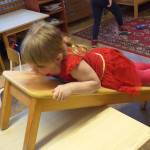 A próbák teljesítéséhez a relaxációval ellazultunk, majd hozzáfogott mindenki az akadályainak a leküzdéséhez (a feladatok a gyermekek egyéni képességeihez igazodtak). Az akadályokat több-kevesebb segítséggel, biztatással mindenki végrehajtotta, és aztán megkapta a kedvenc játékát, majd a hónap dalára örömükben táncra perdültek. A mozgásokat a gyermekek a dalhoz maguk improvizálták.