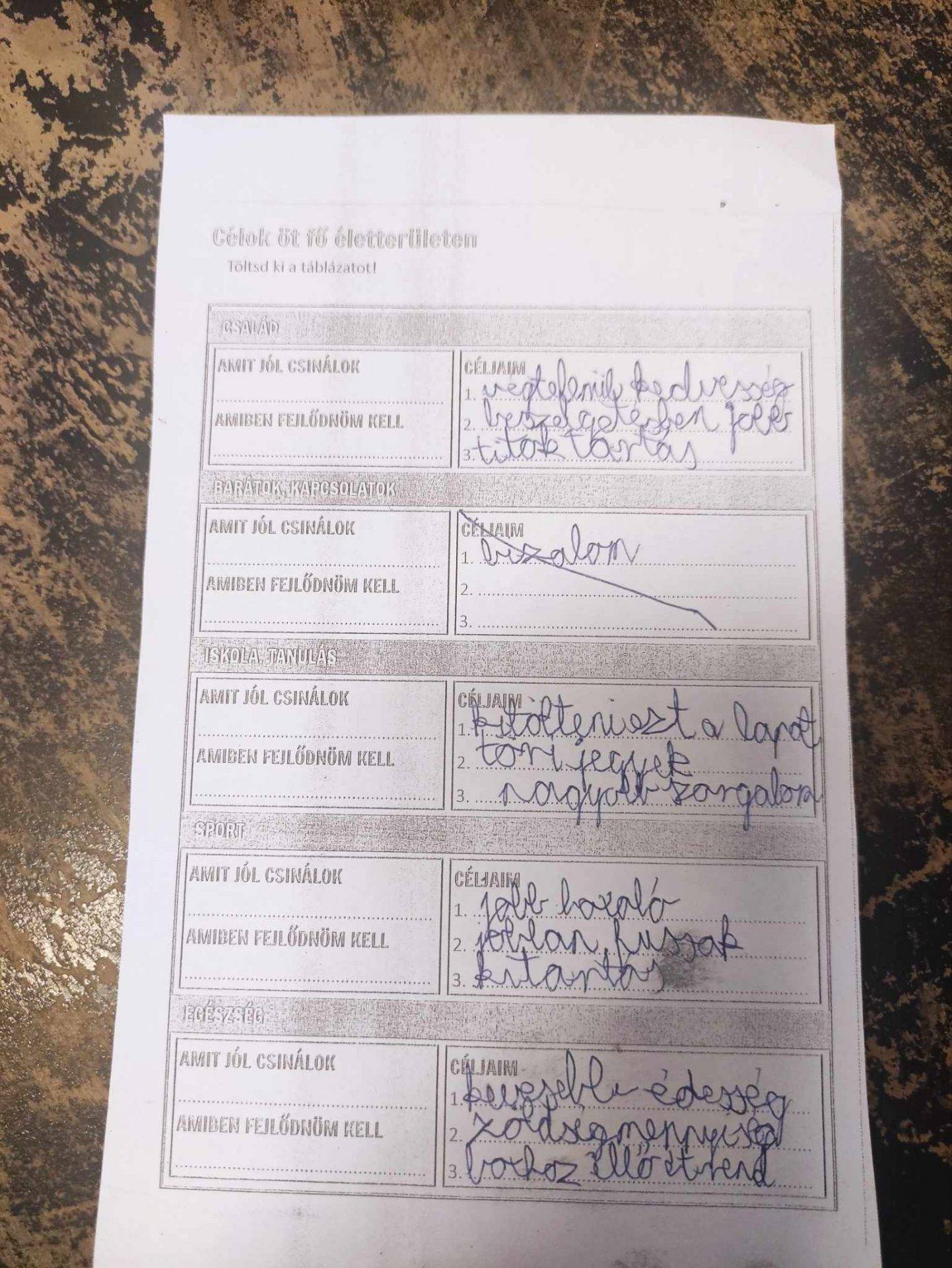 -„Célok öt fő életterületen”