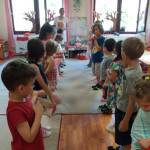 A gyerekek már nagyon várták az újabb (utolsó) találkozást Boldog Dórával. A szokásos kezdés után egy közös drámajáték keretében, Boldog Dóra vezette végig a gyerekeket Csodálatos Boldog Kerekerdőben egy térkép segítségével. Minden helyszínen visszautaltunk az előző tapasztalatainkra, élményeinkre és minden állomáson kaptak a gyerekek egy színes fonalat. Sok minden a gyerekeknek maguktól is eszükbe jutott, az előző foglalkozások emlékeiből. Amikor a Boldogság várhoz értünk a Szeretet folyosón haladt át minden gyerek egyesével, míg a többiek jó tulajdonságait sorolták. Emlékül a begyűjtött 9 színű fonalból boldogság karkötőt készítettünk, amit mindenki hazavihetett. (Jó volt látni, hogy még napokkal később is rajtuk volt a karkötő.) Egy közös öleléssel tértünk vissza Boldogságországból és búcsúztunk el Boldog Dórától.