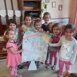 A boldogság órákat előkészítettem azzal, hogy megrajzoltuk közösen a boldogság várat, amit a Didergő király c.mesével alapoztam meg. Minden foglalkozás egy rongybaba (Boldog Dóra) megjelenésével indul, aki megsimogatja a gyerekeket, a javasolt mondókával hívja a gyerekeket Boldogság országba. Ezután használtuk a könyv javaslatait: a relaxációs gyakorlatot, a zenehallgatást, majd a mese elmondását. A mesemondás után hála kertet készítettünk, mindenki virágokat színezett, füves kertet ragasztottunk. A gyerekek nagyon kedvesen ajánlották barátaiknak, szüleiknek a hálavirágot.