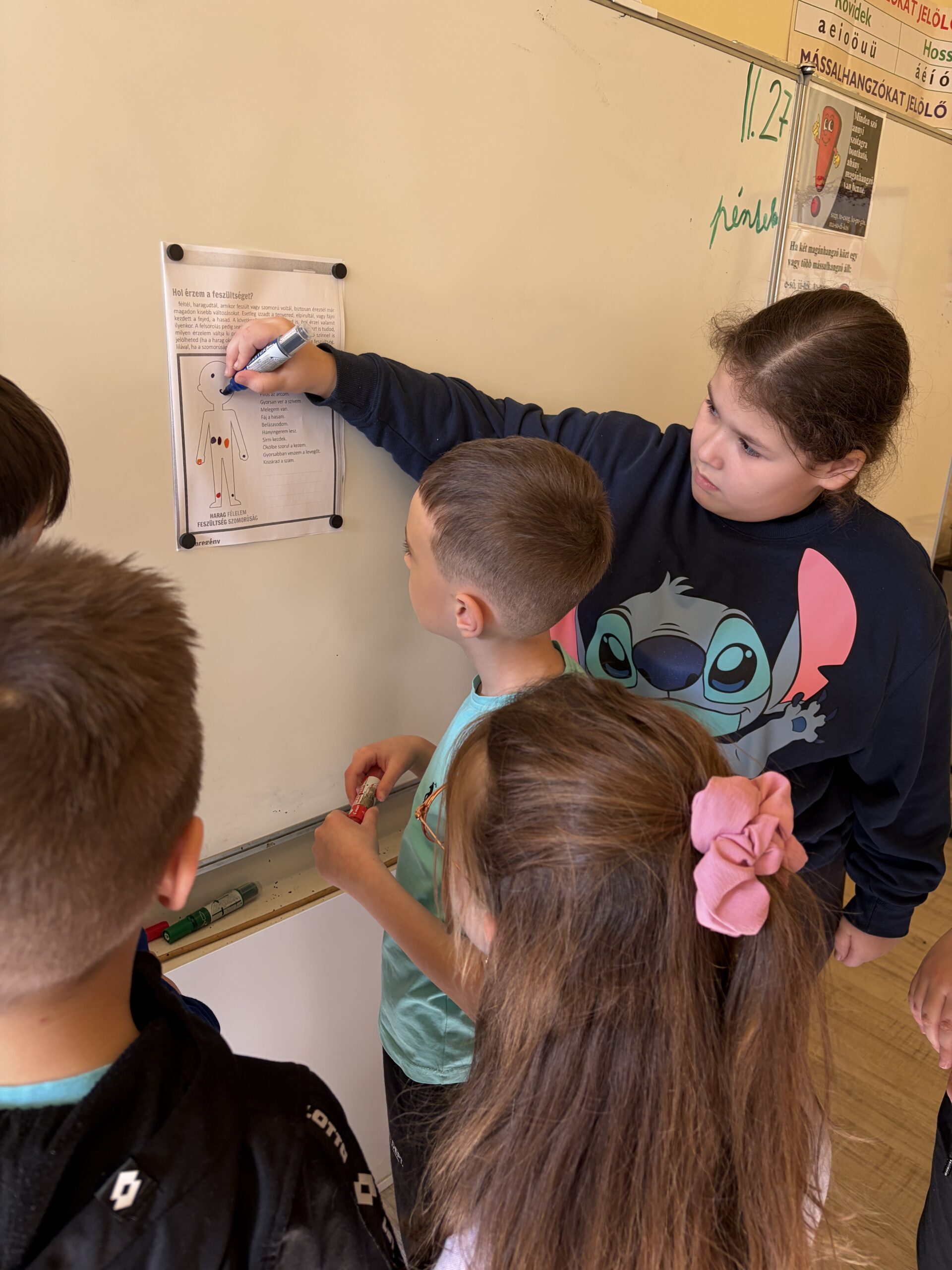 A februári téma feldolgozása izgalmas elemeket tartogatott. Mocsarjaras játékkal indítva meg kellett küzdeniük a gyerekeknek,hogy atjussanak a túlsó partra,ezzel felvezetve a témát,majd körben ülve a témához kapcsolódó mese után boncolgattuk a témát. Ki az,akinek már valaha volt ilyen tapasztalata? Fel szoktad adni? Erre jó példa volt a labirintus, de senki nem adta fel, még ha elsőre nem is sikerült. Az indulathomero rangsorolását és a testen található feszültségpontokat közösen oldottuk meg a táblánál. Új szavakat is tanultunk és a csapatszellem is erősödött játék közben.