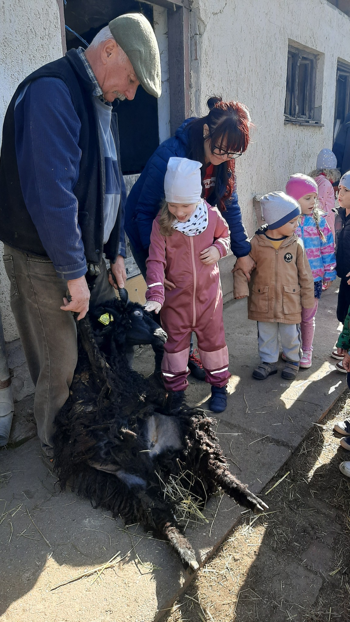 A tevékenység végén elsétáltunk Blanka és Zalán nagypapájához, ahol a barikat megsimogathatták a gyerekek.