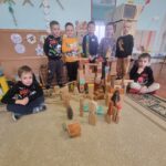 A csoportban lévő fiúk egy része közösen fa építőkockából tornyot épített. Előzményként elmeséltem nekik az Égig érő paszuly c. mesét. Közösen egymást segítve építették meg a tornyot és a körülötte lévő várat is kiegészítésként. A képzeletük szárnyalt közben.
