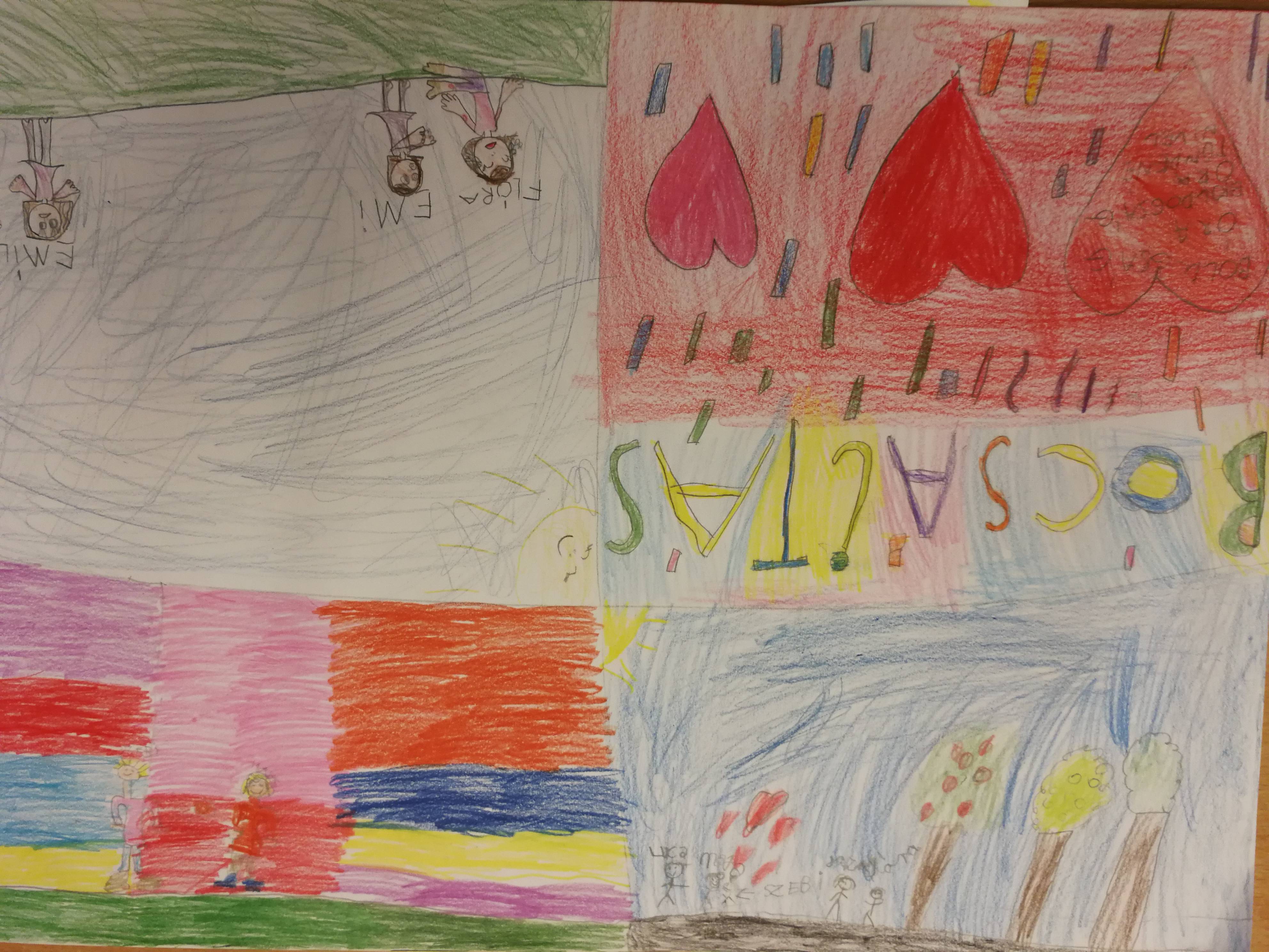 Elsős tanítványaim rengeteg olyan történetet elevenítettek fel saját tapasztalataikból, melyek megbocsátással végződtek. Szituációs játékokkal tettük élményszerűbbé, majd rajzokban örökítettük meg őket.
