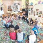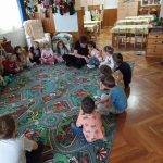 Mesélés: Kerekerdő kalandra hív téged vers elmondása után elmeséltem a „Boldog erdő” című mesét. Nagyon szeretem ezt a mesét, és mivel mindig új gyerekek vannak a csoportba, szeretném, ha ők is megismerhetnék! A mesélés során egy –egy helyszínen megálltam a mesélésben, és eljátszottuk mi is a mese történéseit:
