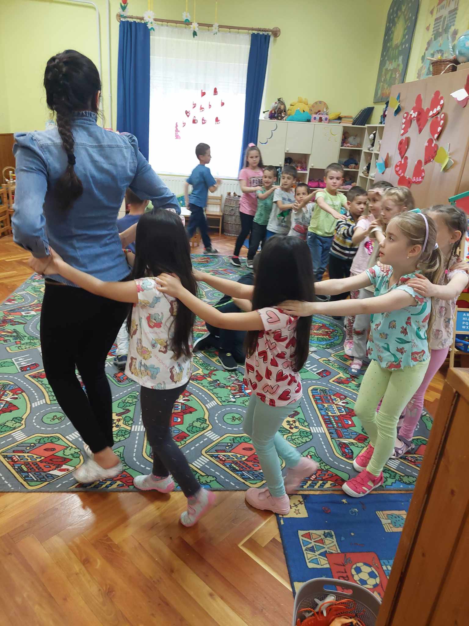 Ölelésláncot játszottuk el, betekertük a láncot, és egy nagy ölellés valósult meg!