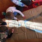Örömke elkészítése : a gyerekek szerettek volna lányt és fiút is készíteni, így született meg Tündérfény és Öröm Zoli. Bár kicsit átalakult az eredeti tervhez képest, hagytam őket szárnyalni. A két rajz kikerült a folyosóra, így minden gyermek és szülő látja.