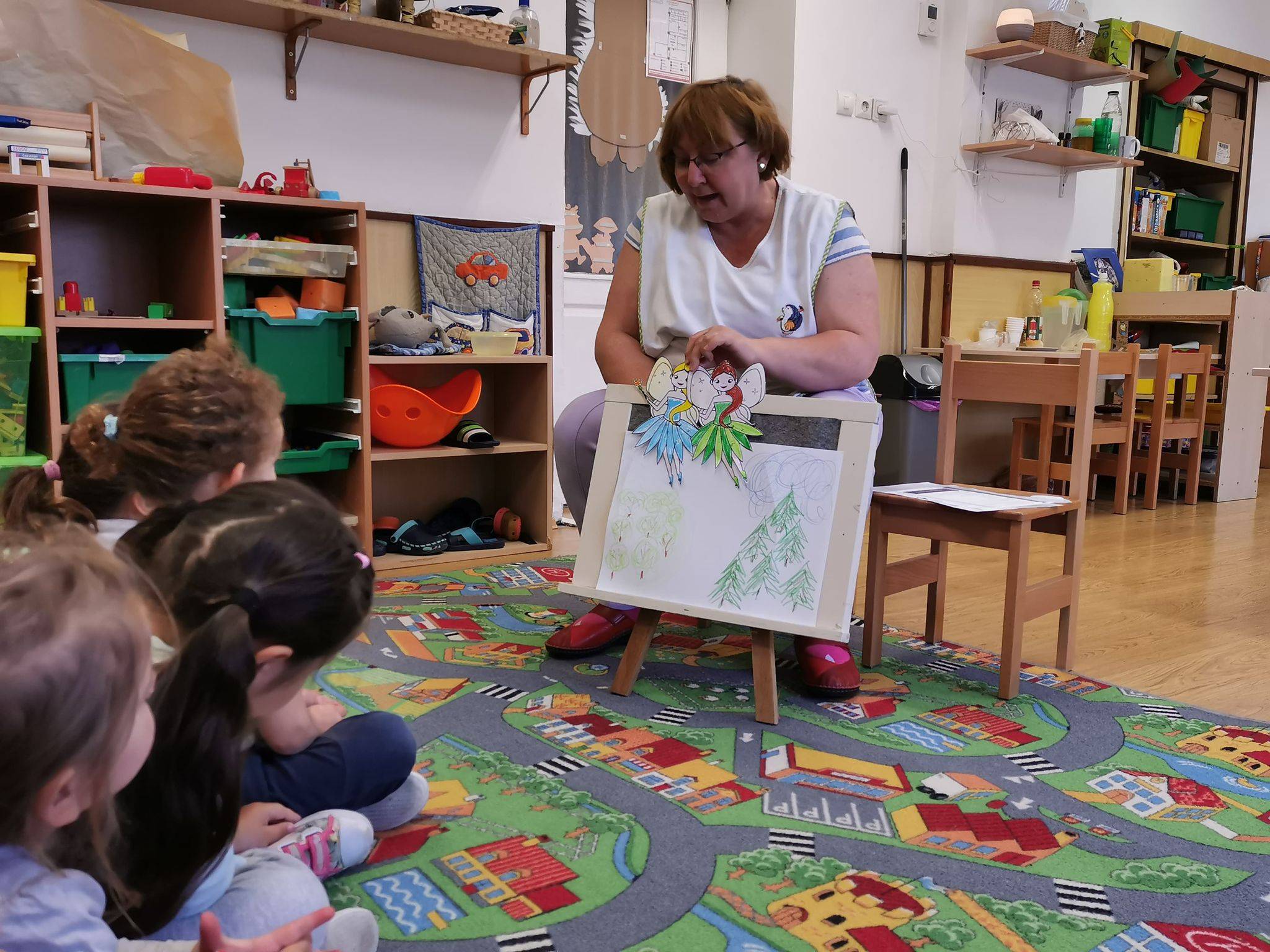 A jelen helyzetben, amikor a 3-4-5 éves gyermekeim a zárások miatt nagyon keveset voltak együtt társaikkal, szívesen vesznek részt a boldogság foglalkozásokon, már megismerik Dórát, várják, hogy milyen mesét hoz nekik.