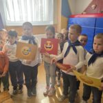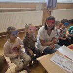 A mese után a nagycsoportosok Boldogságórán vettek részt, mivel az óvodában is zajlanak már ilyen foglalkozások. Központi téma az optimizmus és az együttműködés volt. A gyerekekkel beszélgettem arról, milyen érzés, ha segítenek nekik, és milyen, ha ők segítenek másoknak. Az érzéseiket egy hangulathőmérőn is elhelyezhették. Ezt követően felvettük az optimista szemüveget és egy újabb mesét meséltem, melyben az állatok összefogtak és mindenki segített tyúkanyónak.