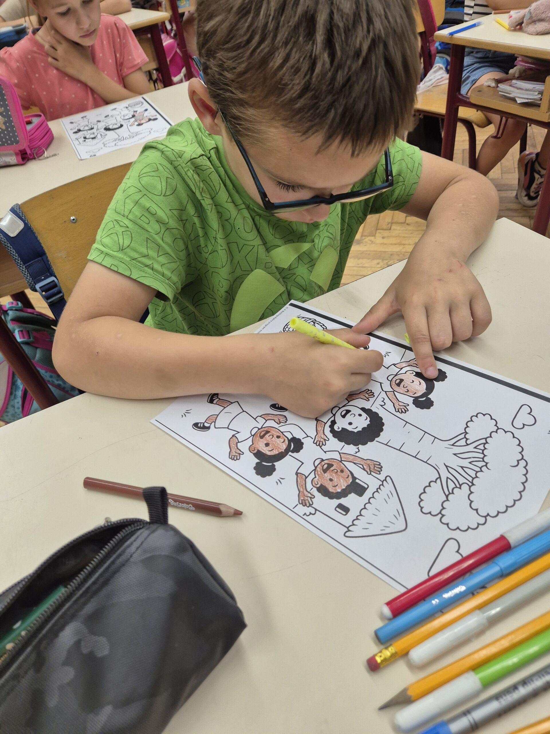 Indító, mozgásos alapú relaxációs gyakorlat (a bagoly) elvégzése után szerepjátékot játszottunk a Föld szemüvegén át. Majd meghallgattuk az Ubuntu című afrikai történetet a boldogságról és az összetartozásról. Beszélgettünk a történetről, majd mindenki kiszínezte a történethez tartozó színezőt. Közben meghallgattuk a hónap dalát is.