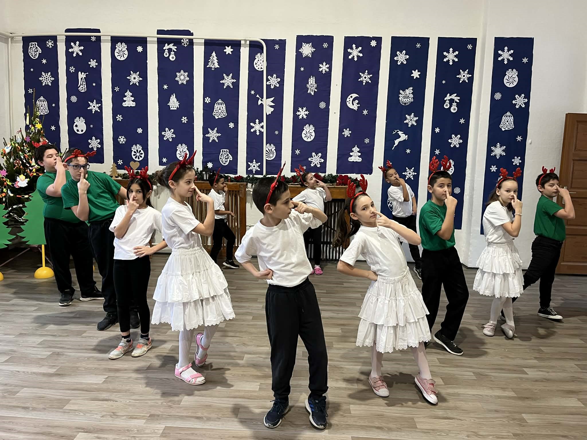 Decemberben a „boldogító jó cselekedetek” megértése egy gyakorlati megoldásban valósult meg, mert a tanulókkal a karácsonyi délutánra egy szuper kis előadással készültünk. Az volt a közös célunk, hogy ez a cselekedet, előadás boldogságot okozzon minden résztvevőnek, társaknak, szülőknek és vendégeknek, tanároknak egyaránt. A készülődés ideje alatt tudatosodott a tanulókban, hogy az előadással mekkora örömet szerezhetnek szeretteiknek, ezért a legnagyobb örömmel és odaadással csinálták szívvel-lélekkel a szeretet jegyében. Az előadás rendkívül nagy siker volt, a gyerekek és nézők egyaránt büszke és boldog szívvel vettek részt rajta.