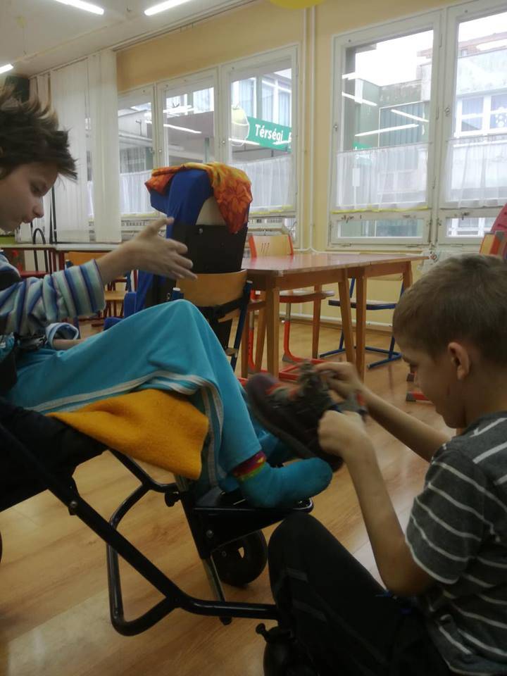 Ebben a hónapban csatlakozott hozzánk iskolánk fejlesztő osztálya is. A csoportban súlyos, halmozottan sérült gyerekek és egy értelmileg akadályozott gyermek jár. A társas kapcsolatok témakört dolgozták fel, megtanulták, hogy segíthetnek egymásnak. Amikor lemegyek hozzájuk, úgy érzem másik dimenzióba kerülök. Igaz, őszinte, tiszta, feltétel nélküli szeretet. Az órát tartotta: Szigetvári Anikó gyógypedagógus. Köszönöm neki!