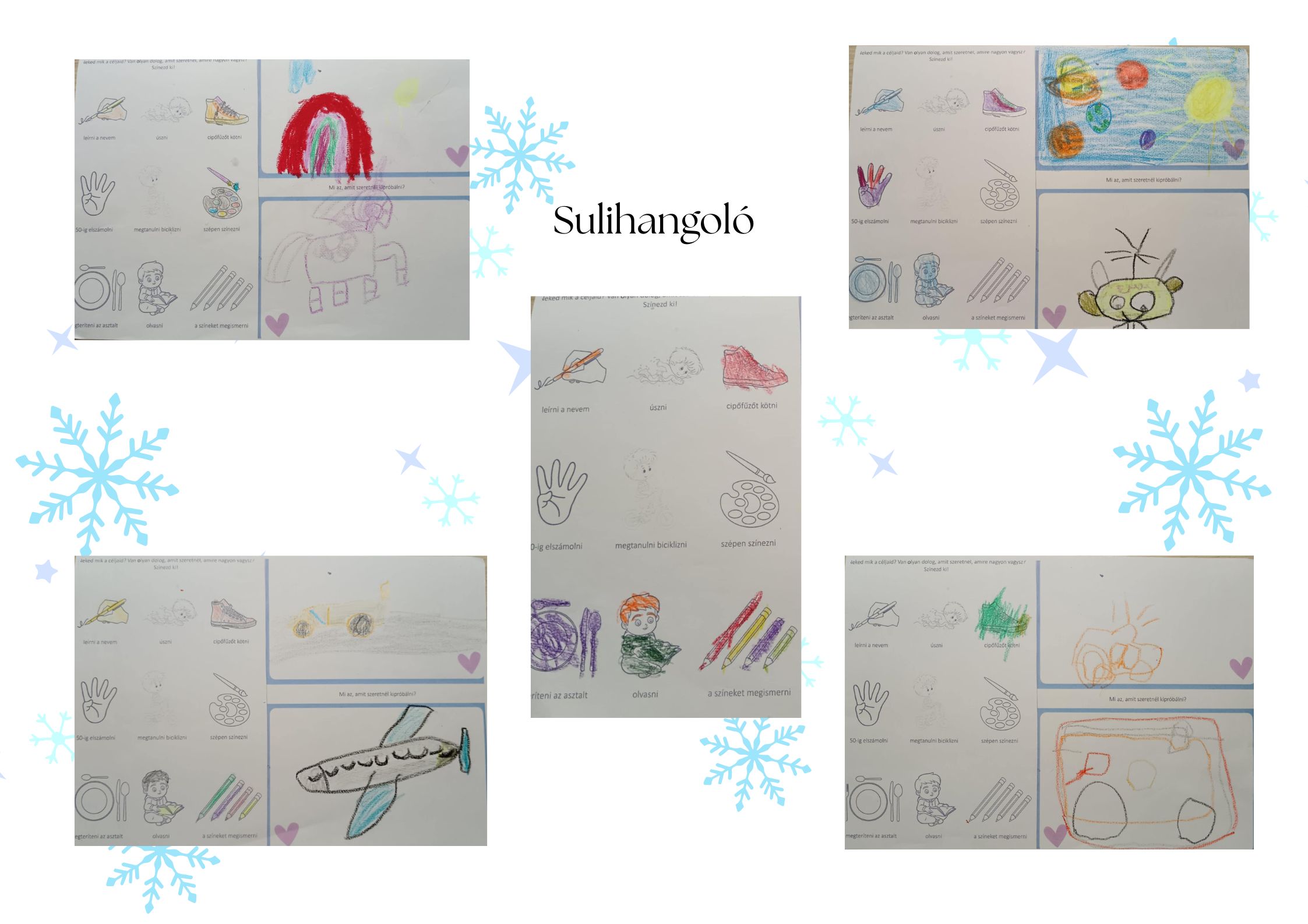 A kézírás nemzetközi napjához kapcsolódva megnéztük Dávid Ádám: Koppány betűket firkál című videómeséjét, majd az iskolára való hangolódásként először a történetről, majd arról beszélgettük, hogy kinek mire kell odafigyelnie, milyen képességeit kell megerősítenie a hátralévő hónapokban ahhoz, hogy az iskolában majd sikeres és boldog lehessen. Aztán a feladatlapon mindenki kiszínezte azokat a célokat, amiknek az elérését fontosnak gondolt, majd lerajzolták, ki mit szeretne kipróbálni. Volt ott versenyautó, helikopter, repülőgép, tűzoltó- és rendőrautó éppúgy, mint unikornison lovagolni a szivárvány alatt, vagy feljutni a világűrbe!