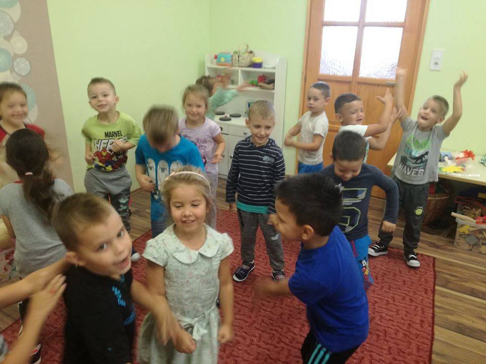 Az élmények megosztásáért cserébe, Boldog Dóra ” A hálafa története” mesével kedveskedett a gyerekeknek majd az ” Örülök, hogy újra együtt vagyunk!” játékot játszottuk. A játék jó lehetőség volt, a nyelvi kifejezőkészség, tolerancia és a társas kapcsolatok fejlesztésére, ugyanakkor a visszaszoktatást is megkönnyítette, és a csoporthoz tatozást is erősítette, amire az év elején nagyon nagy szüksége van minden gyermeknek.