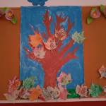 Szemléltetve a csoport tagjainak apró figyelmességét, hálafát készítettünk közösen, melyre aktuálisan felkerültek a jócselekedeteket okozók saját készítésű levelei.