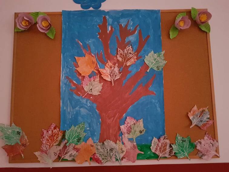Szemléltetve a csoport tagjainak apró figyelmességét, hálafát készítettünk közösen, melyre aktuálisan felkerültek a jócselekedeteket okozók saját készítésű levelei.
