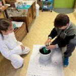 Lehetőségünk volt saját komposztba, újrahasznosított tejesdobozba virághagymát ültetni. Fontos számunkra a zöld környezet, a környezettudatosság. Lelkesen elevenítettük fel az eddig tanult ismeretekek. A foglalkozás végén mindenkinek saját kis növénykéje lett, akiért felelős. Megbeszéltük a gondozás fontosságát. A virágokat természetesen a megfigyelések után haza is viheti.
