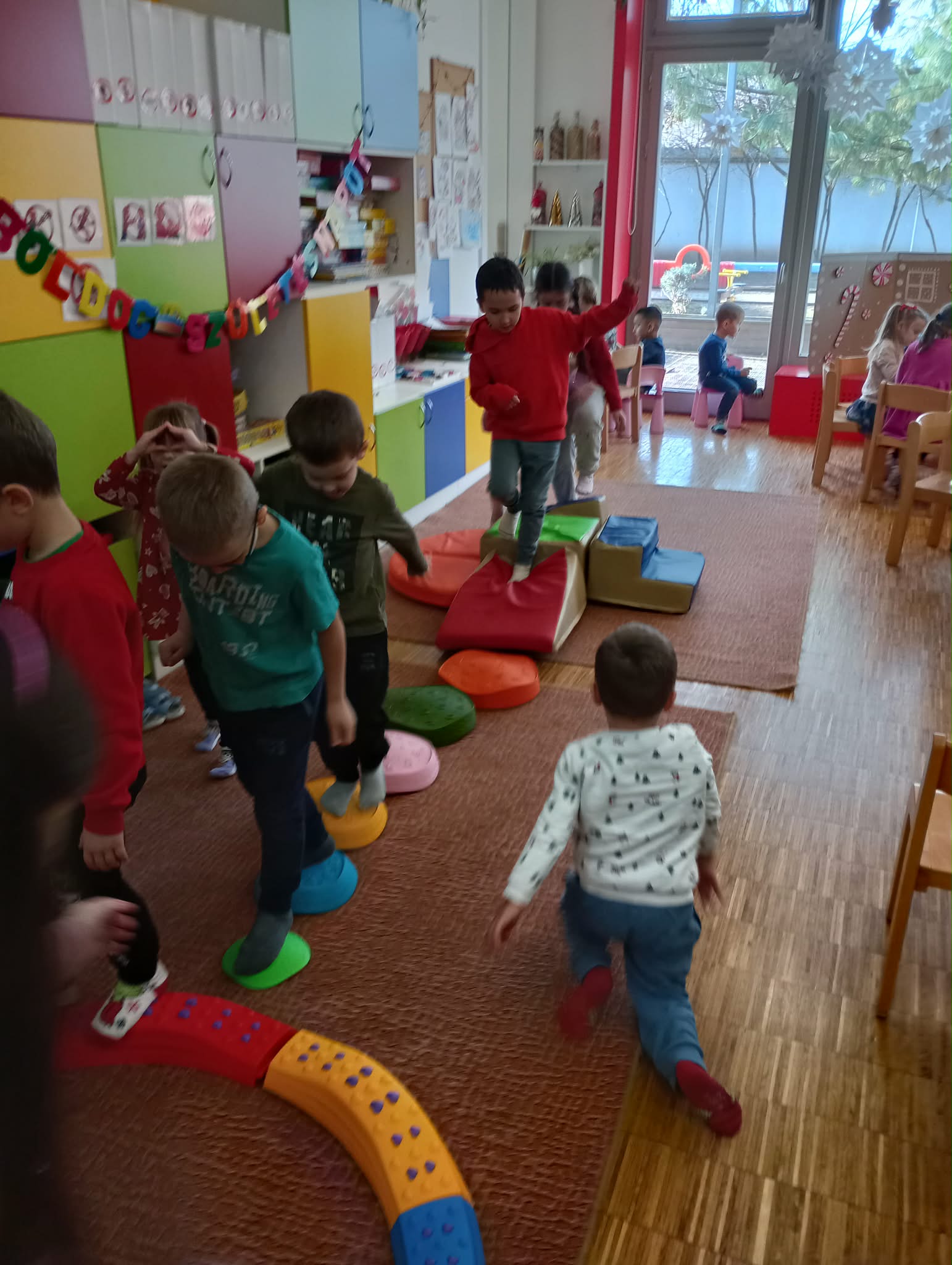 o Mozgásos játék: „Hóesés”: a gyerekek lassan, majd gyorsan forognak, „hópehelyként” esnek a földre, majd visszaállnak.