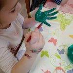 Először hóvirágokat készítettünk a Hóvirágmezőhöz. A nagycsoportosok hajtogattak, ragasztottak, a kicsoportosok tenyér, és ujjfestéssel próbálkoztak.