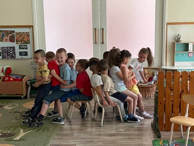 A Boldogerdő – Kerekerdő mese tökéletes volt ahhoz, hogy közösen felidézzük a Boldogságóra témákat. Nagy örömömre szolgált, amikor a gyermekek a mese alapján maguk ismertek rá a Boldogságóra témáira, meséket, játékokat, élményszerű beszélgetéseket idéztek fel. Igényeiknek megfelelően időztünk el egy-egy témánál, s bizony jó hosszúra nyúlt a felidézés, nevetgélés, kalandozás. Ezután jól esett egy egy vidám kooperatív játék, a Székfoglalónak azt a változatát javasoltam , ahol a szék nélkül maradt gyermek nem esik ki a játékból, hanem beülhet egy társa ölébe. Nagyon jó hangulatban, sok nevetéssel telt a játék.