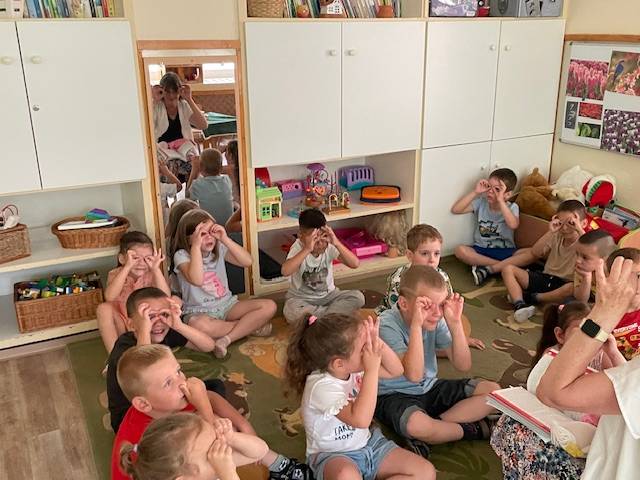 A gyermekek köszöntése és egy rövid beszélgetés után közös relaxációra került sor, a Napra forgó a napraforgó gyakorlatot választottam hozzá.