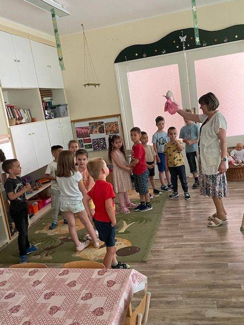 A nevelési év utolsó Boldogságóráján Dóra búcsúzni érkezett a gyermekek közé, hiszen a csoport nagy része szeptembertől megkezdi az iskolai tanulmányait.