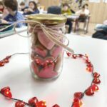 Mielőtt az üveget lezártuk volna, mindenki kívánt valami jót a társainak: sok mosolyt, barátságot, türelmet és vidám napokat. Az elkészült szeretetbefőtt köré világító szívfüzért tettünk, amely még különlegesebbé tette ezt a közös alkotást.