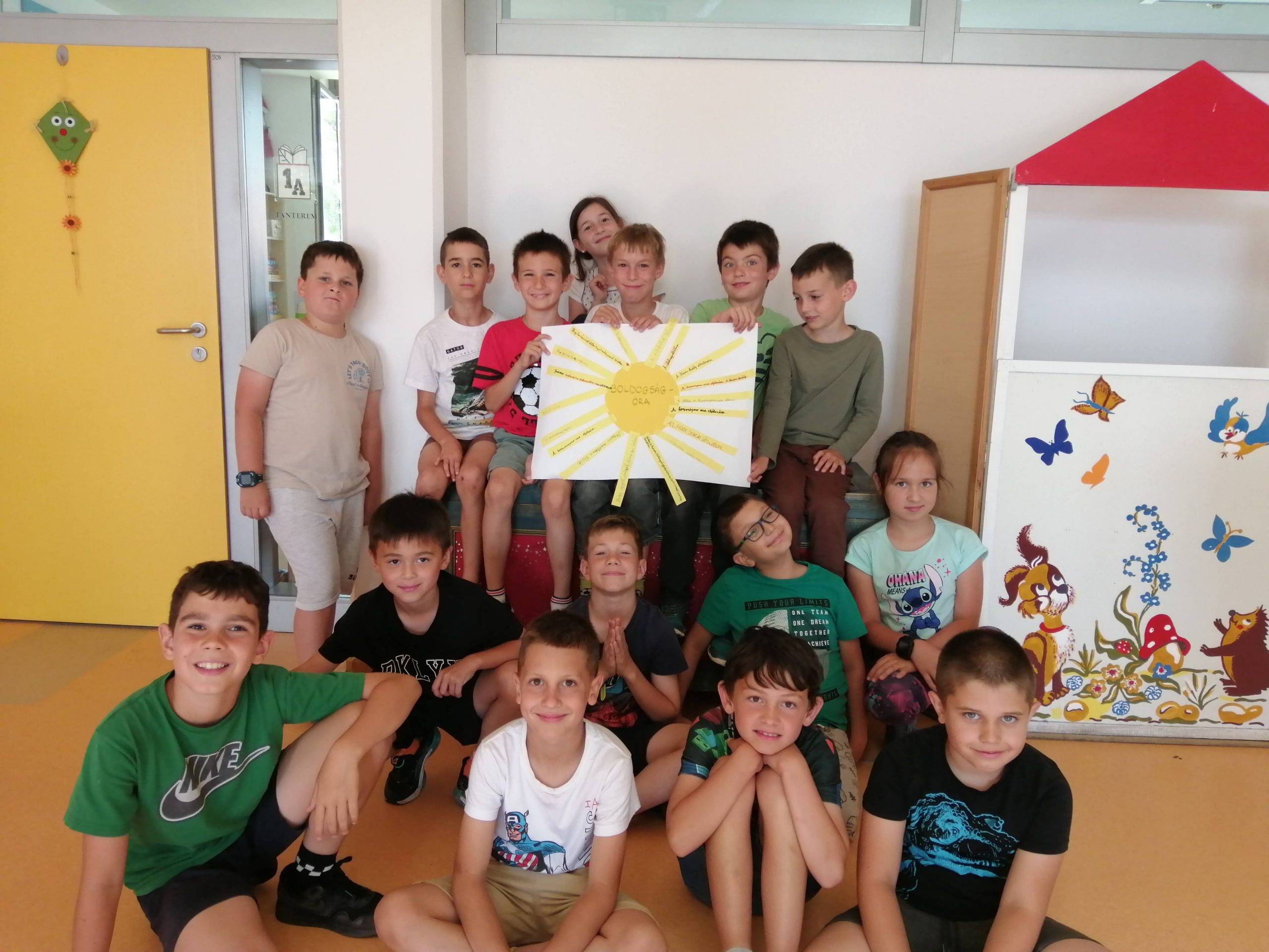 „ Nagyon szeretem a Boldogságórákat, mert sok új dolgot tanultam meg. Tanultunk arról, hogy hogyan lehetünk másokkal kedvesek. Megtanított Incike néni, hogy ne legyünk mérgesek és dühösek. Beszéltünk arról, hogy ki mikor boldog. Én például akkor, amikor a családommal lehetek, vagy amikor gólt lövök. Incike nénit én nagyon megszerettem. Ő a legjobb napközis tanító néni.”