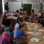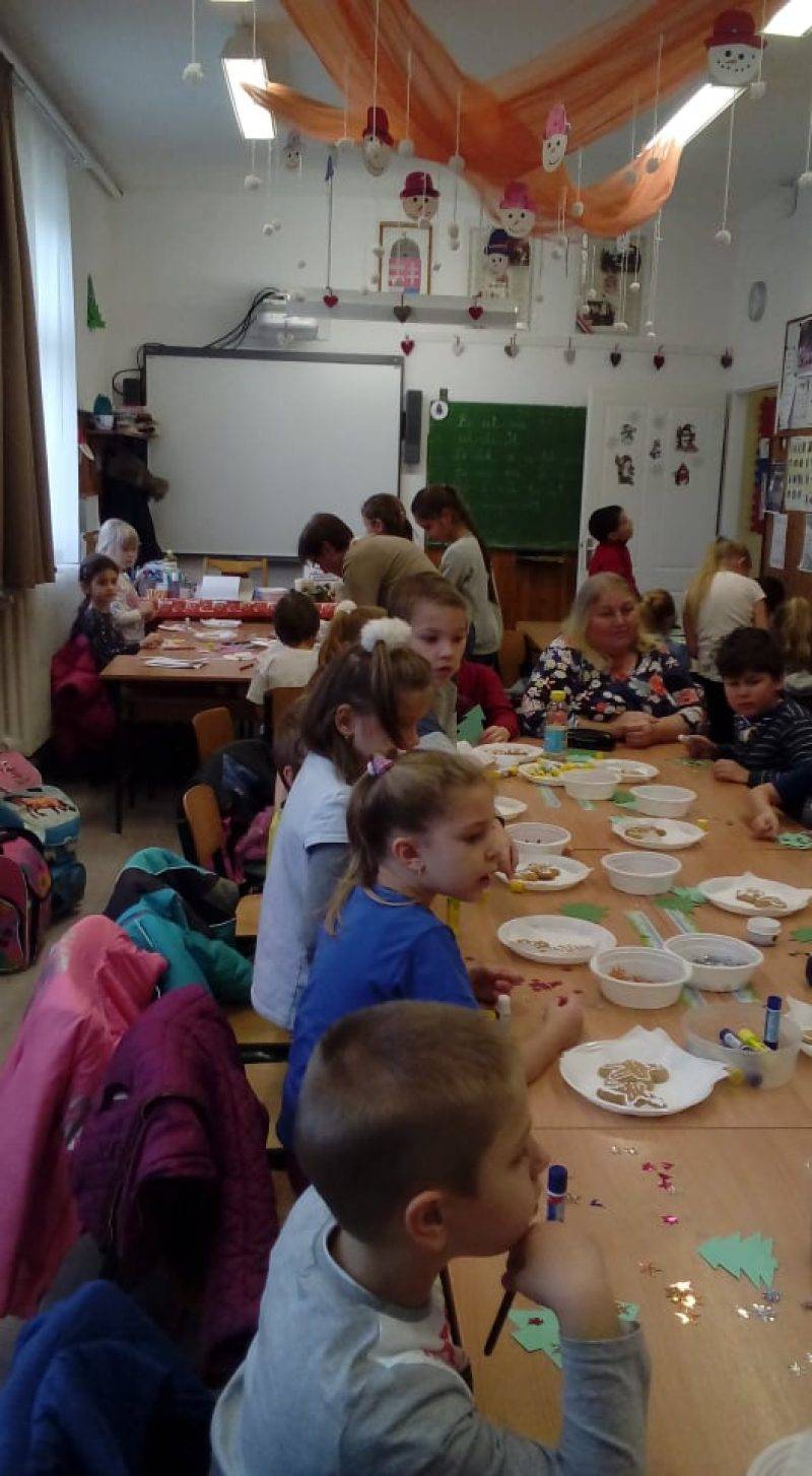 Az óvódásoknak segítenek a képen igen nagy türelemmel.