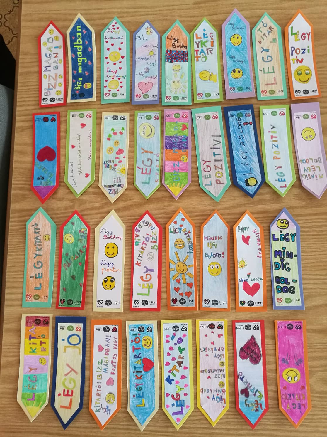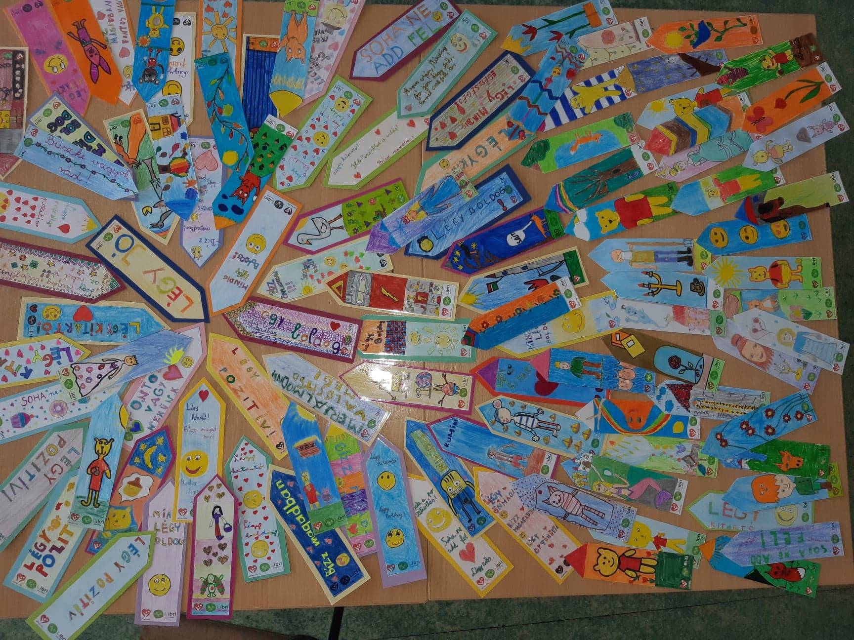 Iskolánk több csoportjában készült több, mint 130 könyvjelző. A legnagyobb ösztönző erőt az jelentette a gyerekek számára, hogy az ajándékot lehet, hogy az ország másik felén lévő kisgyerek kapja majd.