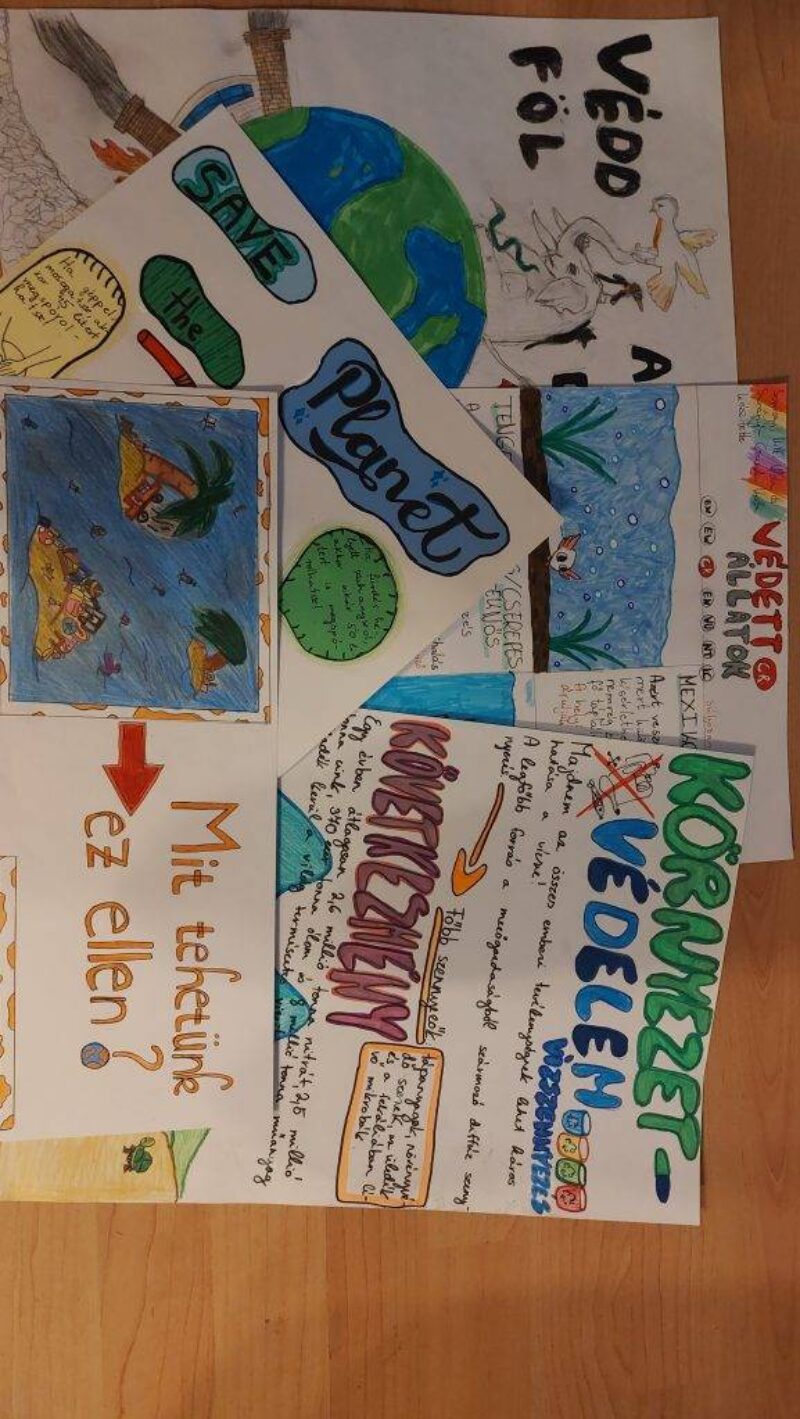 Az osztály közösen kiválasztott témában készített plakátokat arról, hogyan és mit tehetünk az adott probléma ellen. Hogyan változtathatnánk jobbá, szebbé a világunkat.