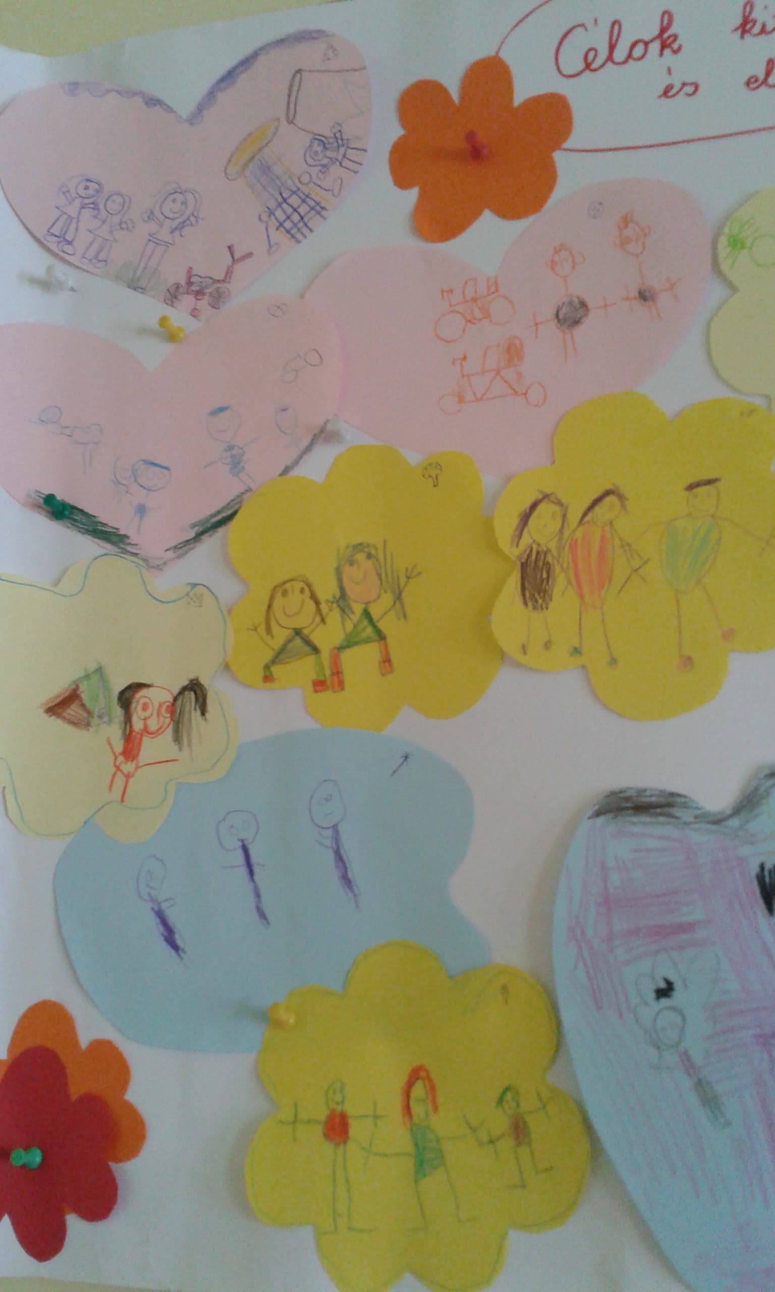 A téma feldolgozását egy relaxációs játékkal kezdtük,az „irkafirkával”.(Nehezen akartak hozzákezdeni,mert mindíg azt tanítjuk nekik „Ti már nagyok vagytok ne firkáljatok,szépeket rajzoljatok”!)Megtanultuk a Van nekem egy álmom c.dalt,és mesehallgatásként A Boldogvár meséjét ismerhették meg a gyerekek.Záró énekléssel, tánccal zártuk a napi tevékenységet: A világomban minden rendben van c.zenével.