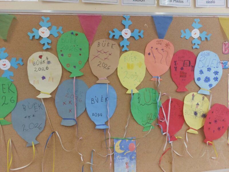 Köszöntöttük egymást az új évben. Készített minden tanuló egy papír lufit, melyet mikor kihoztak a táblához elmondták a céljaikat, melyet ebben az évben szeretnének megvalósítani. Meghallgattuk a „Van nekem egy álmom dalt,” melyet azóta is többször énekeltünk egy-egy óra elején.